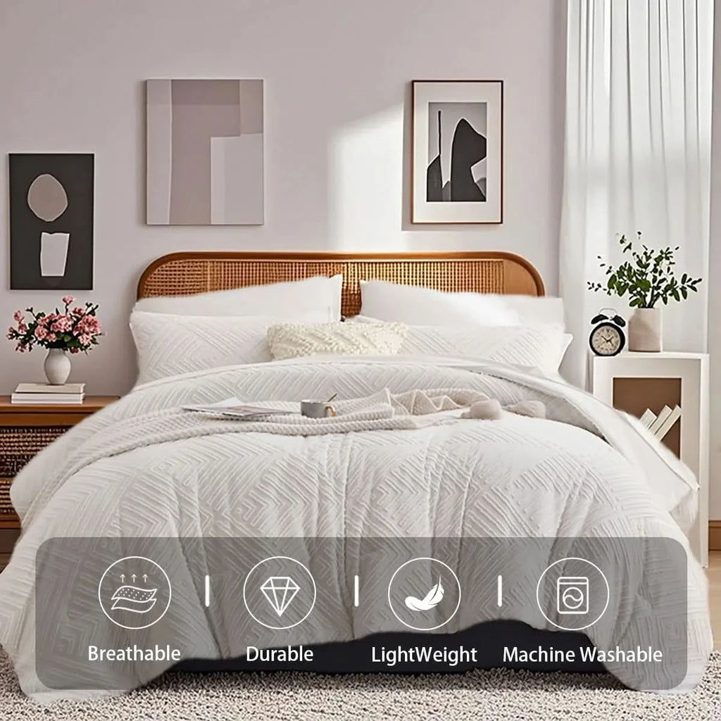 Cloud-like Warmth: Featuring thoroughly tested microfiber filling blend, this comforter maintains the perfect balance between weight and warmth, creating a cloud-like sleeping space.