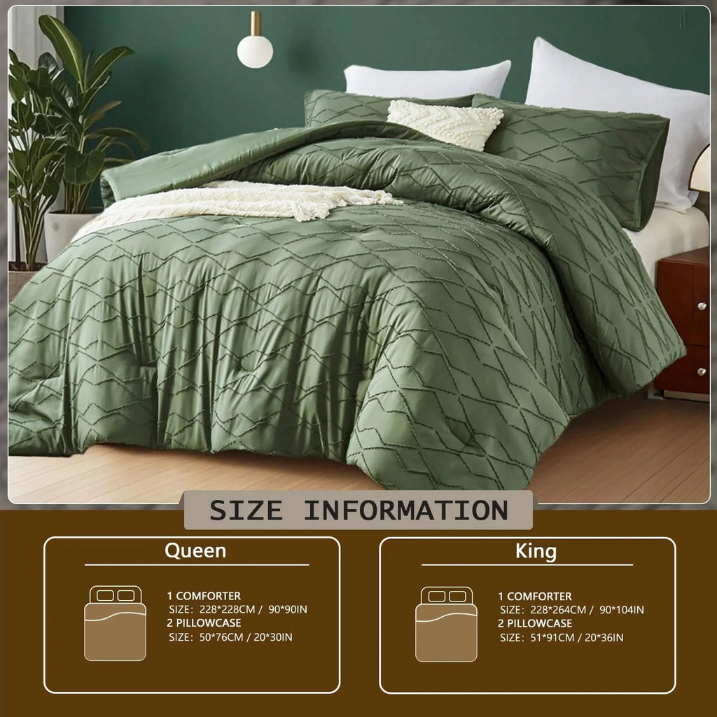 EASY CARE: With premium microfiber fabric and unique dyeing process, this box spring bedding is resistant to fading, shrinking and seam slippage after washing. Please machine wash separately on a gentle cycle in cold water, tumble dry low. FULL BEDDING SET: This queen bed set includes everything you need for a comfortable bed: 1 quilt, 2 pillowcases.