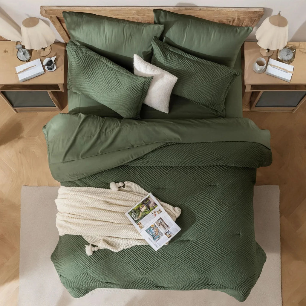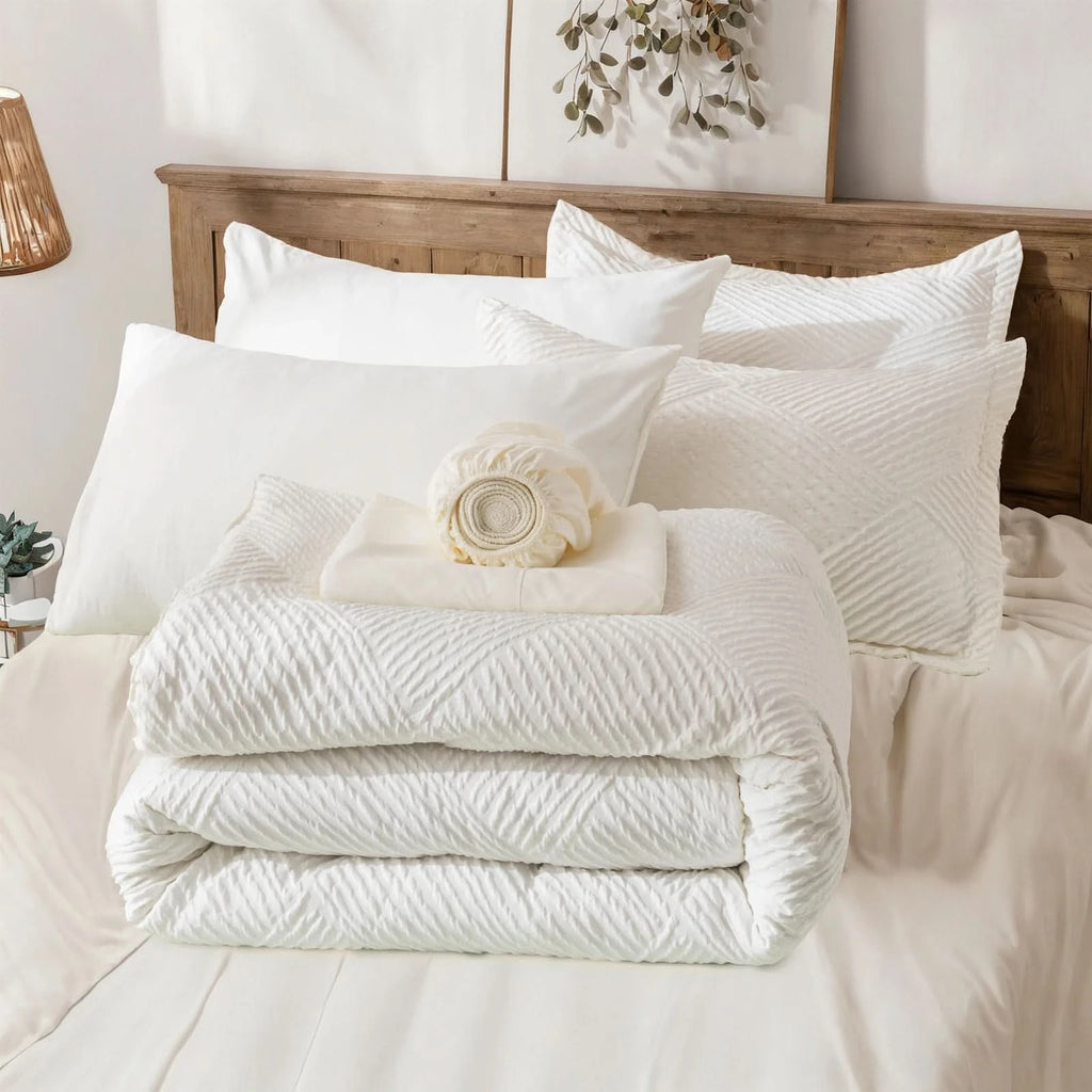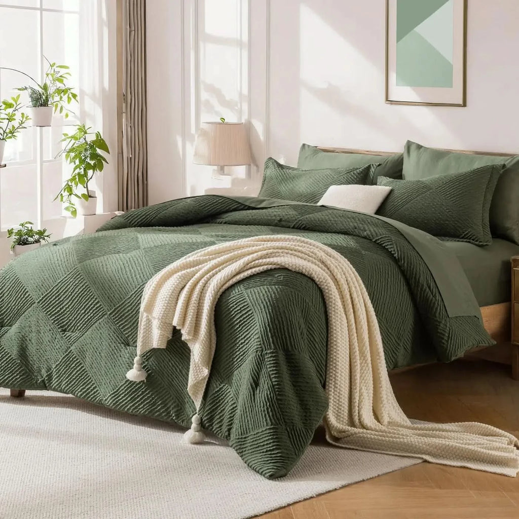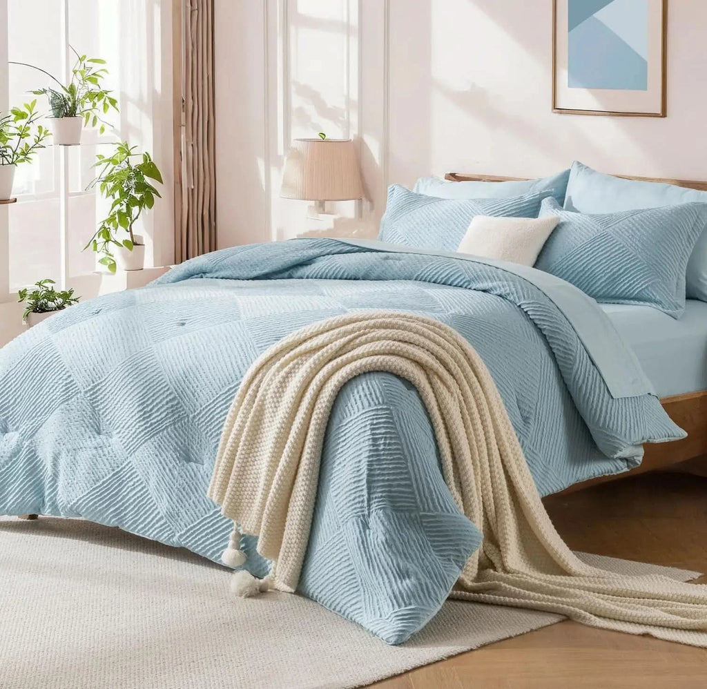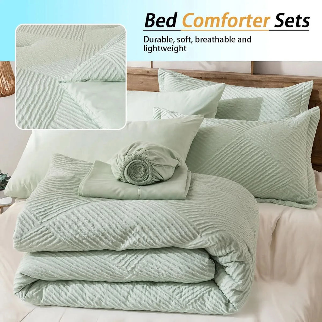 Inclusive Bedding Set: This queen set includes everything needed for a cozy bed: 1 Comforter , 2 Pillowcases, 2 Pillow Shams , 1 Fitted Sheet , 1 Flat Sheet.