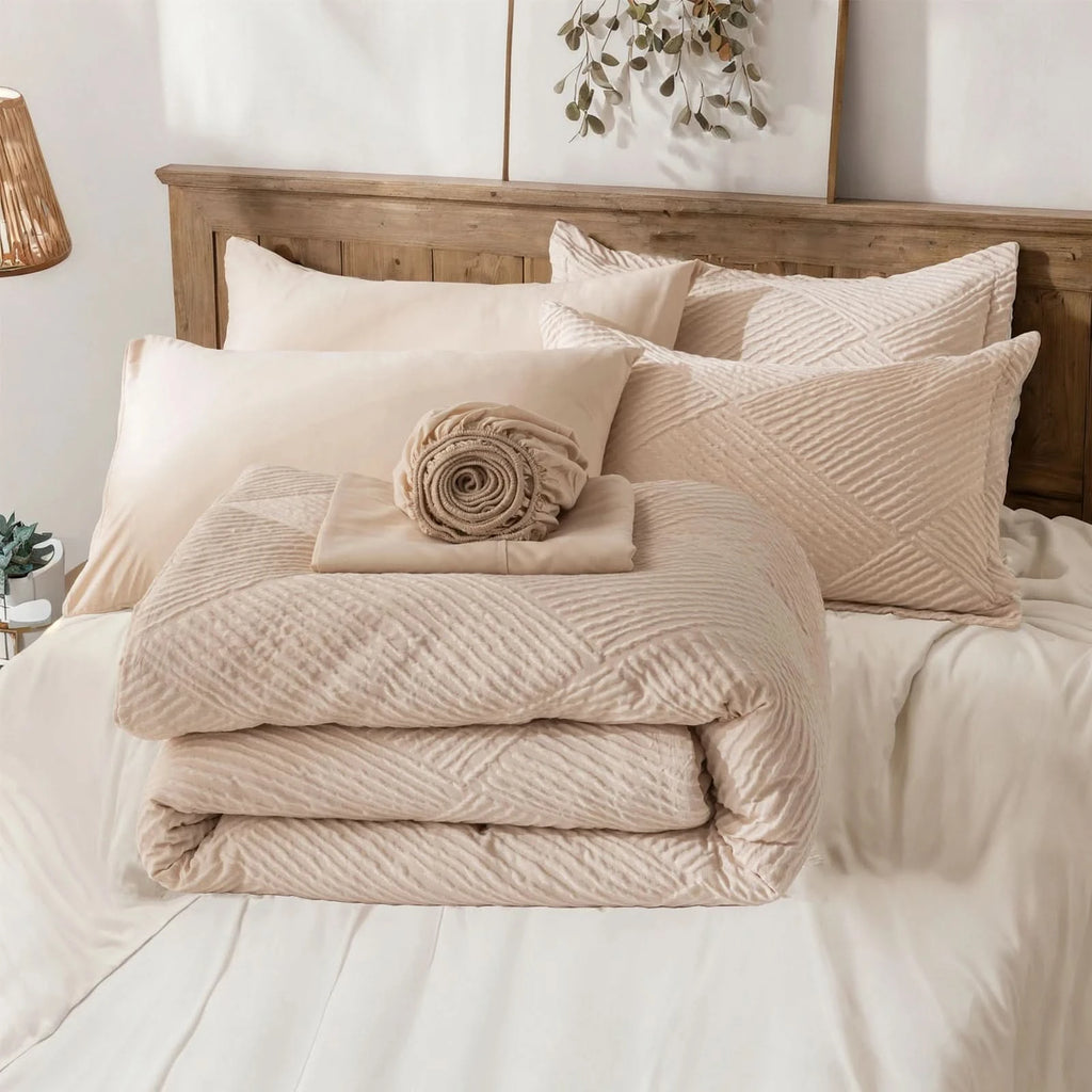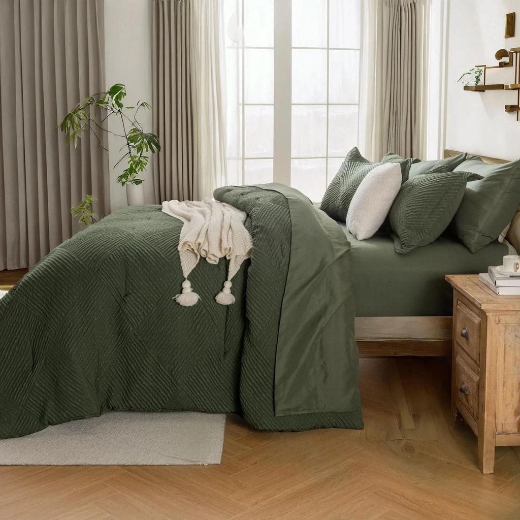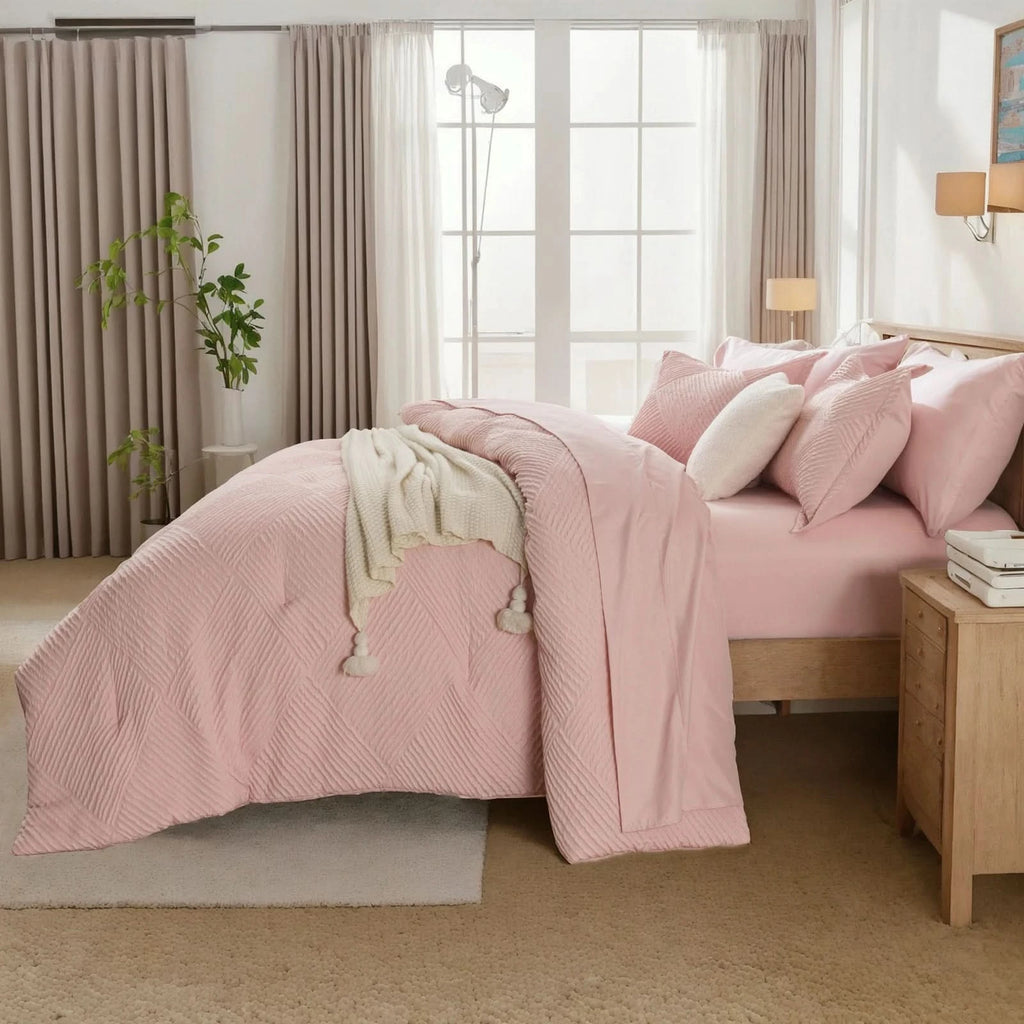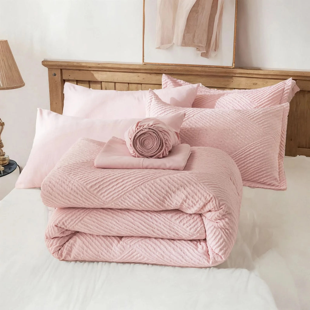 Inclusive Bedding Set: This queen set includes everything needed for a cozy bed: 1 Comforter , 2 Pillowcases, 2 Pillow Shams , 1 Fitted Sheet , 1 Flat Sheet.