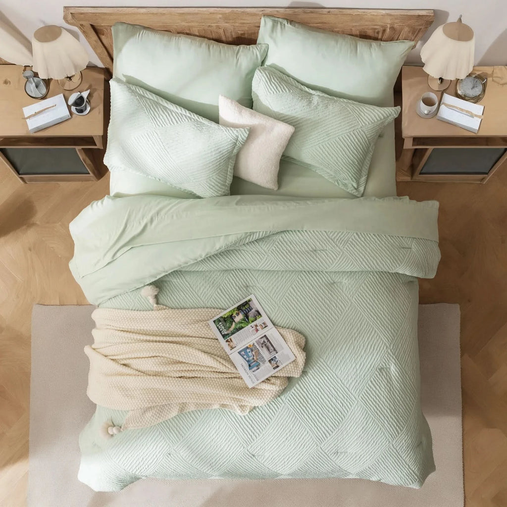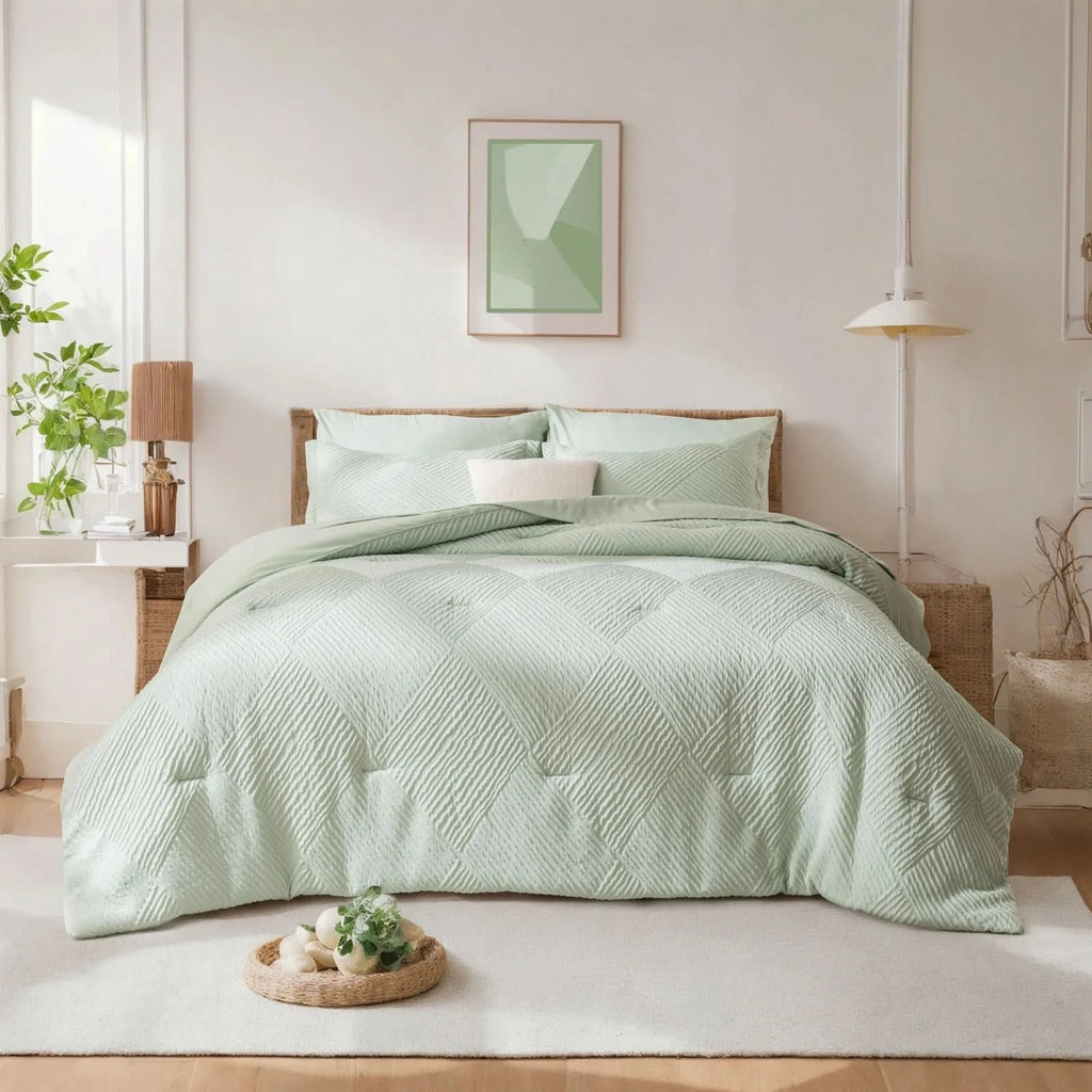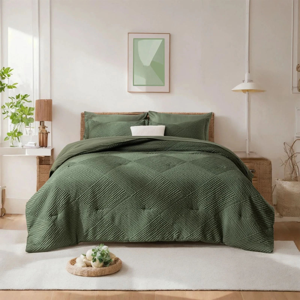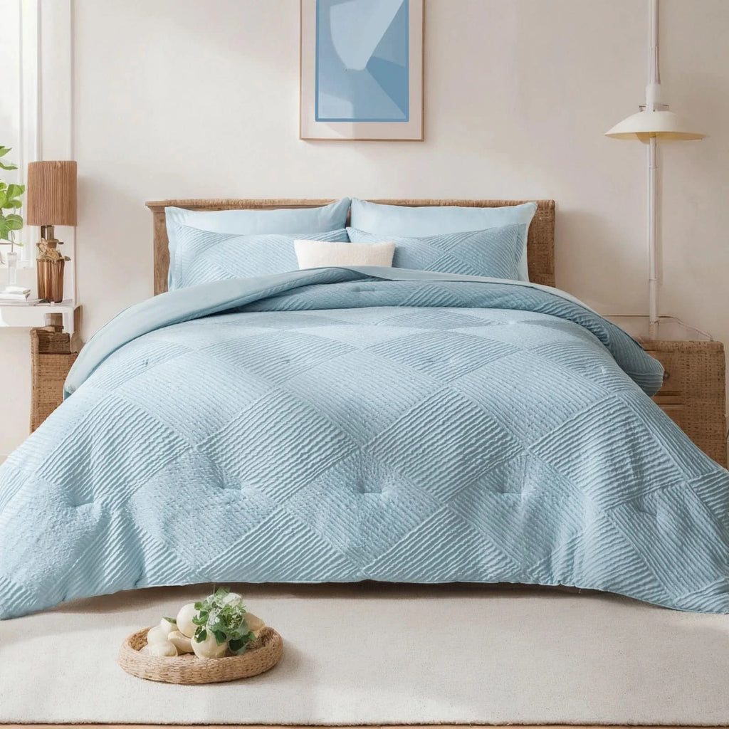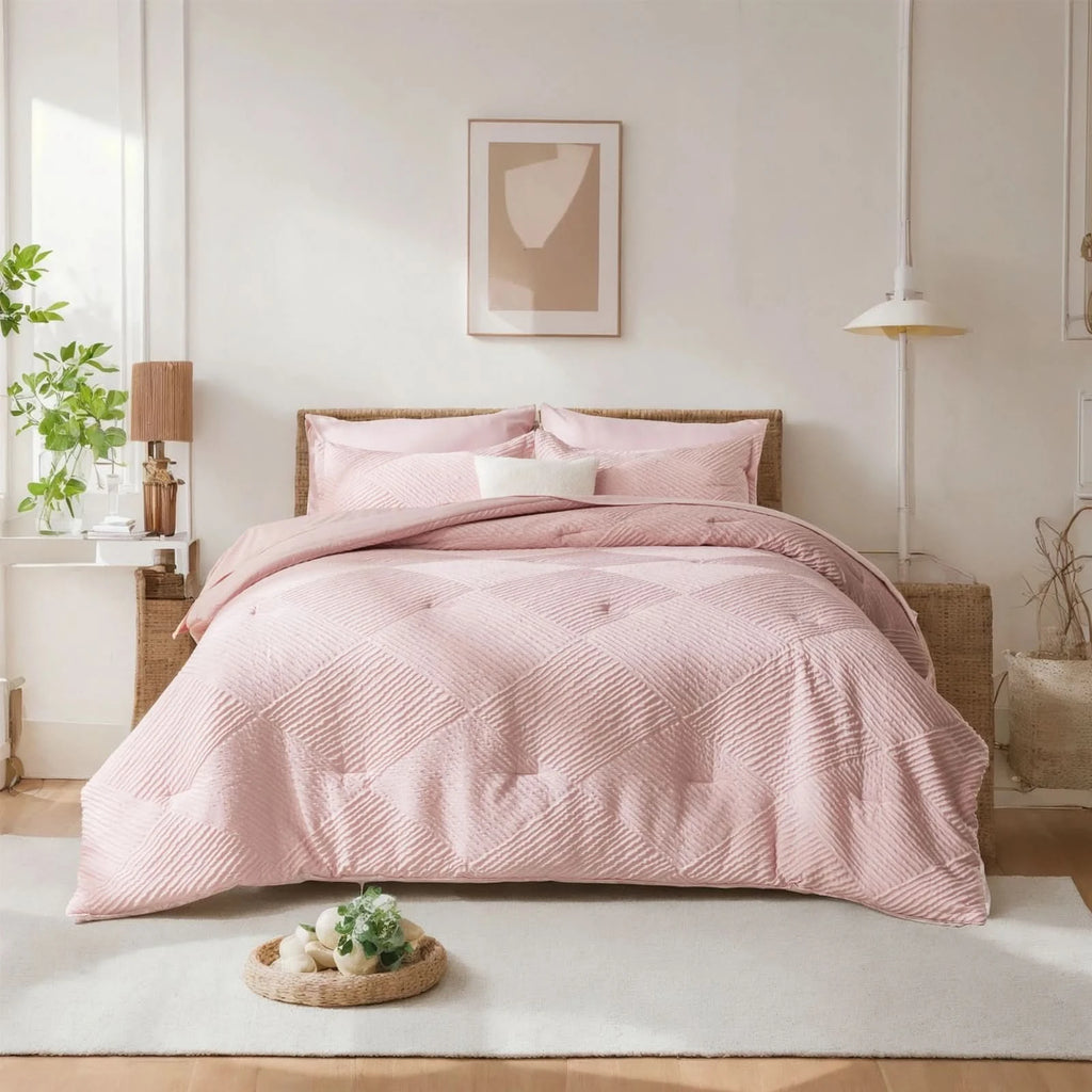 ELEGANT HOME DECOR: Featuring a striped checkered design with a geometric pattern, this queen size bedding set adds a touch of sophistication to any bedroom. Give the gift of elegant coziness to your loved ones, whether it's for Mother's Day, Valentine's Day, Christmas, or just to show you care.