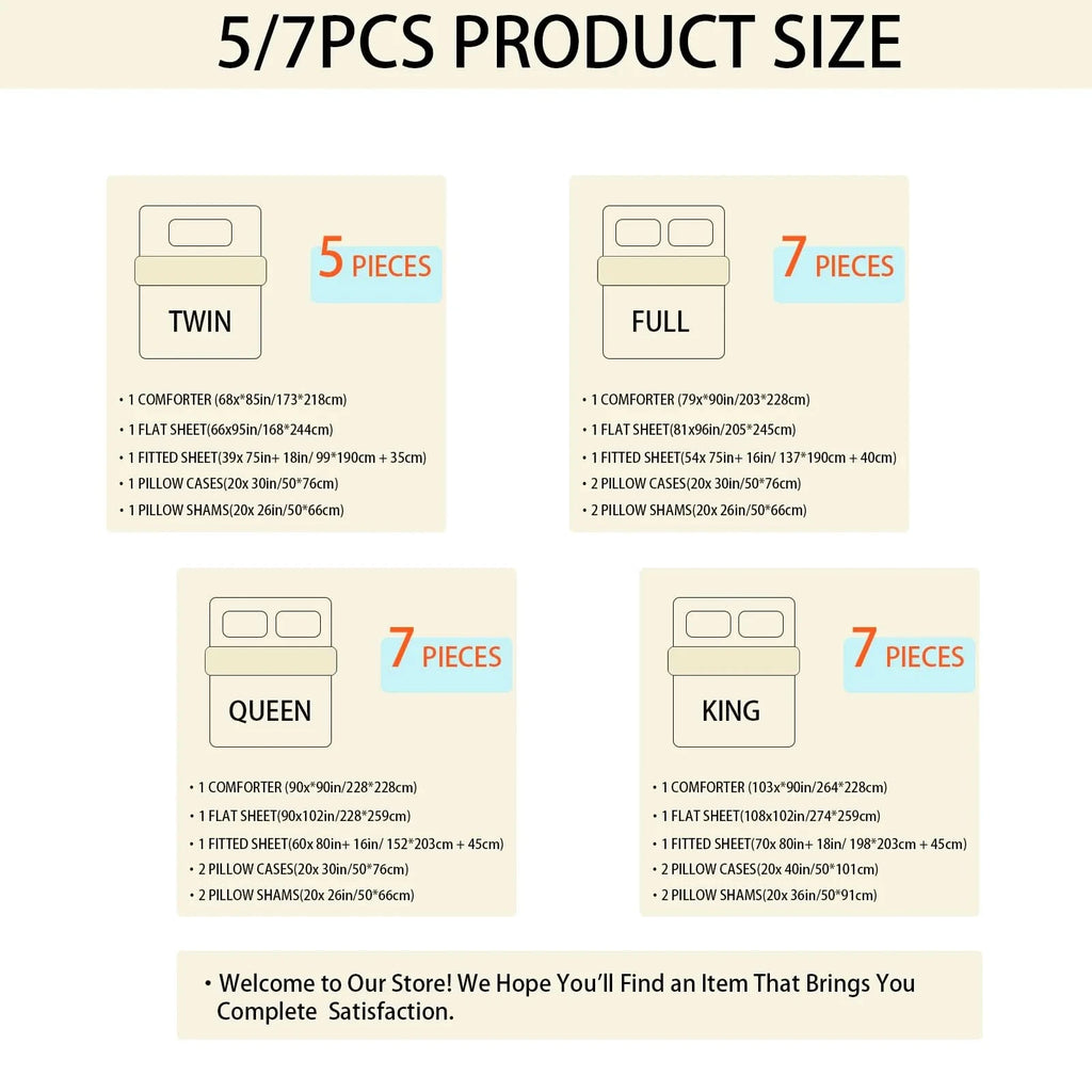 Inclusive Bedding Set: This queen set includes everything needed for a cozy bed: 1 Comforter , 2 Pillowcases, 2 Pillow Shams , 1 Fitted Sheet , 1 Flat Sheet.