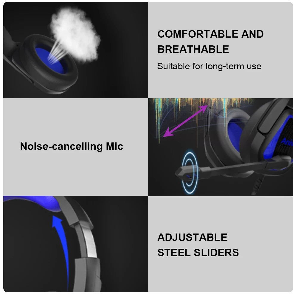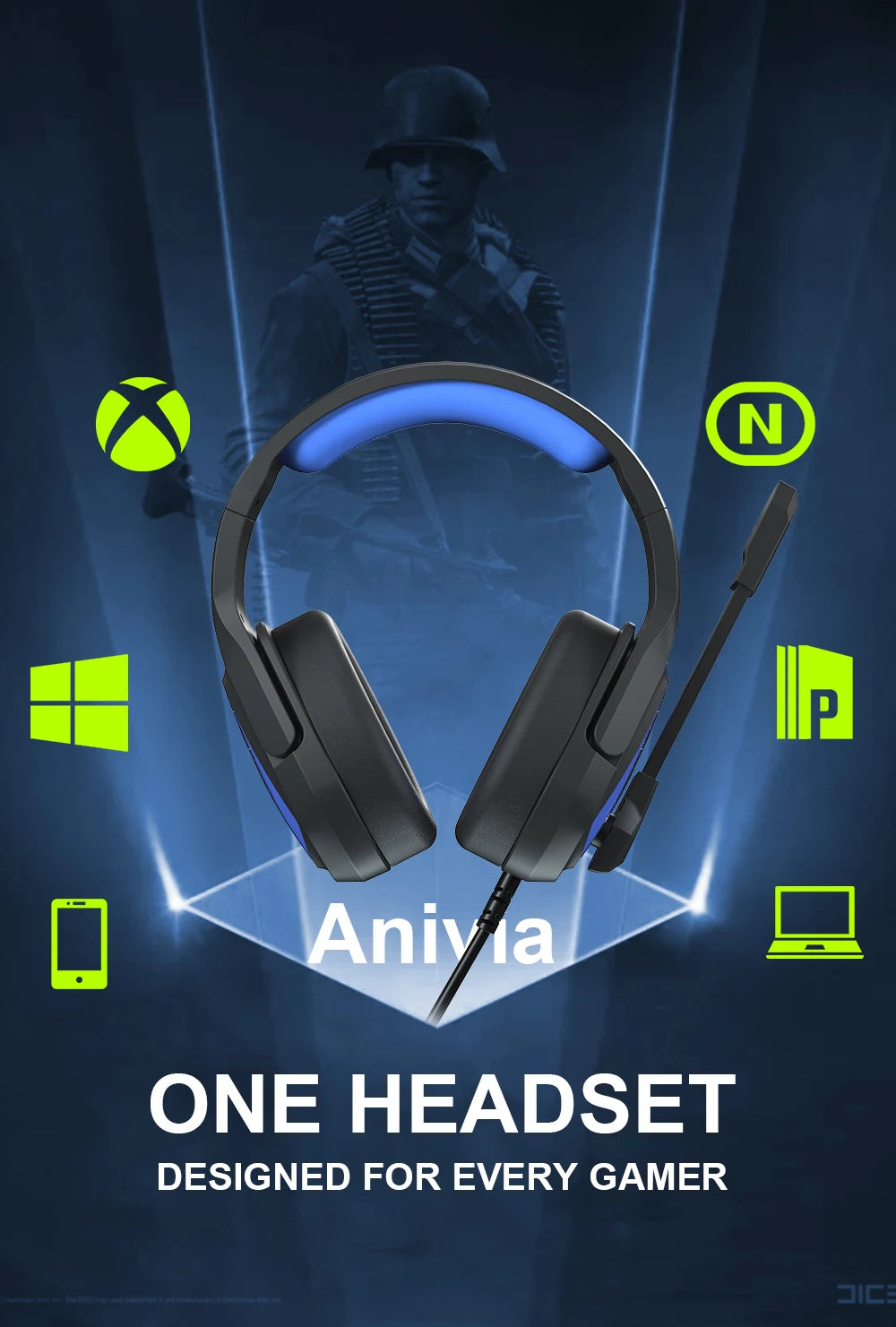 Ergonomic Design & Memory Foam Earmuffs- Anivia gaming headsets designed double padded headbands not only good for reducing head pressure but also suitable for various head shapes. This headset is equipped with soft earmuffs, which can effectively reduce heat accumulation and reduce head pressure, allowing you to enjoy comfort even when playing games for a long time.