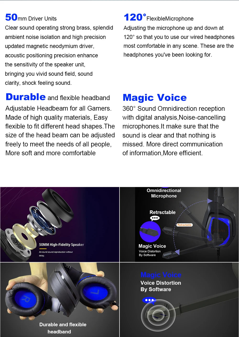 50mm High Fidelity Neodymium Speaker:The sound effect of this gaming headset surpasses the traditional surrounding sound and can provide precise positional sound effects within a 360-degree range, bringing you a more realistic sound immersive experience.