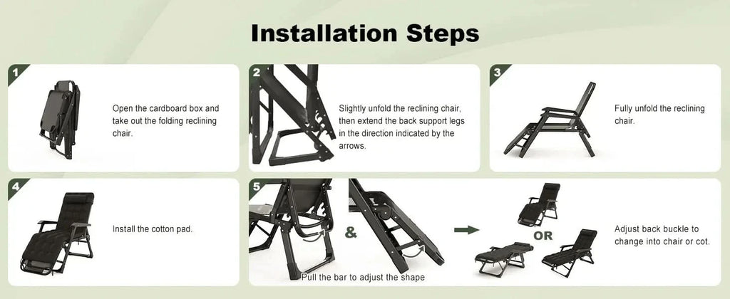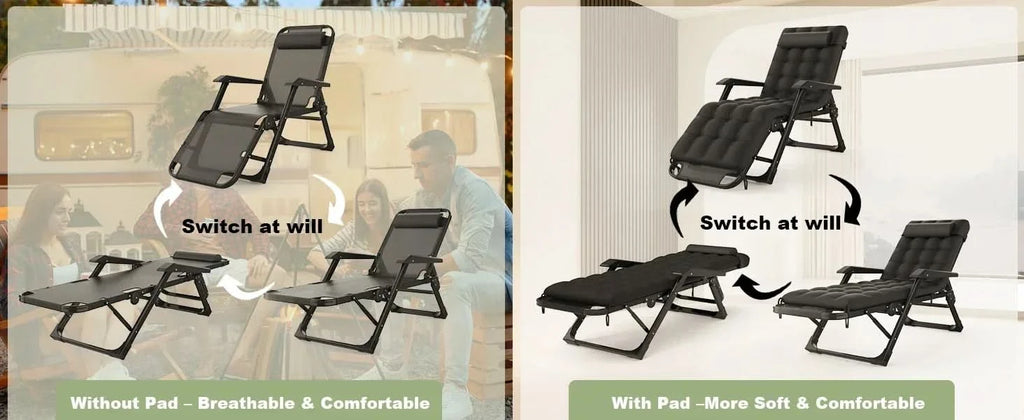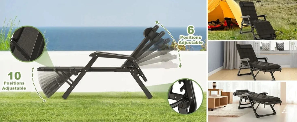 3 in 1 Oversized Folding Camping Cot 29in, 6+10 Positions Adjustable XL Patio Chaise Lounge Chair, Sleeping Cots for Adults