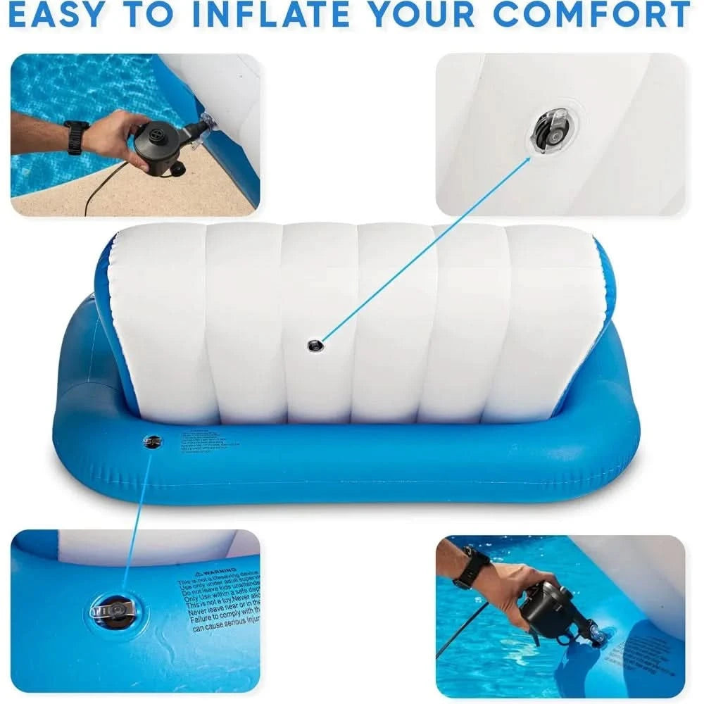 - Cup & Phone Holder Built In: With cup holders and a phone slot, this inflatable sofa pool and pool lounger float lets you keep drinks and your phone within reach—no need to get out of the water while enjoying your favorite pool floaties for adults.