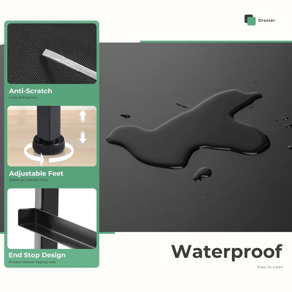 • 【Quality Construction】This fabric dresser combines water-resistant MDF board with a durable steel frame, make it sturdy under load 44 lb. Anti-tipping accessories are also equipped to prevent accidents.