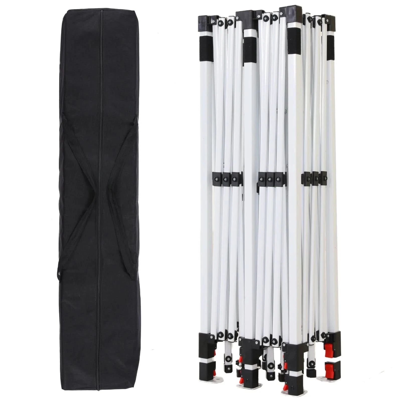 Easy Setup and Takedown: Requiring no tools, just two individuals can promptly assemble and disassemble the 10x20 party tent within minutes. The event shelter, complete with sidewalls, offers three adjustable height settings (center height: 10ft,10.2ft,10.5ft), allowing you to customize the setup to your preference.