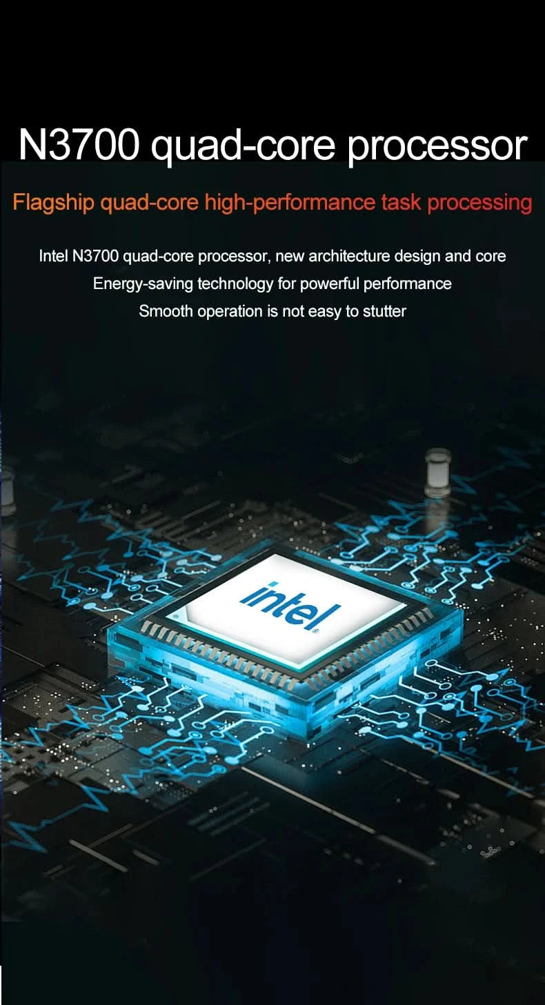 Processor: Intel N3700 Quad-Core Processor (Base 1.6GHz / Burst up to 2.4GHz)