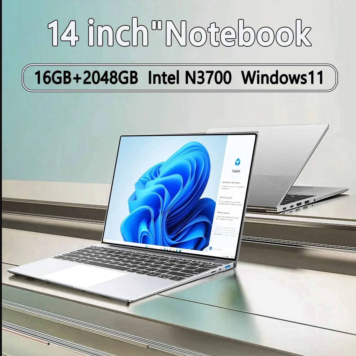 14.1"Ultra Slim Laptop Intel N3700 16GB RAM 2TB SSD Notebook Gamer 1920*1080 Display Office Study Computer PC Windows 11 Pro