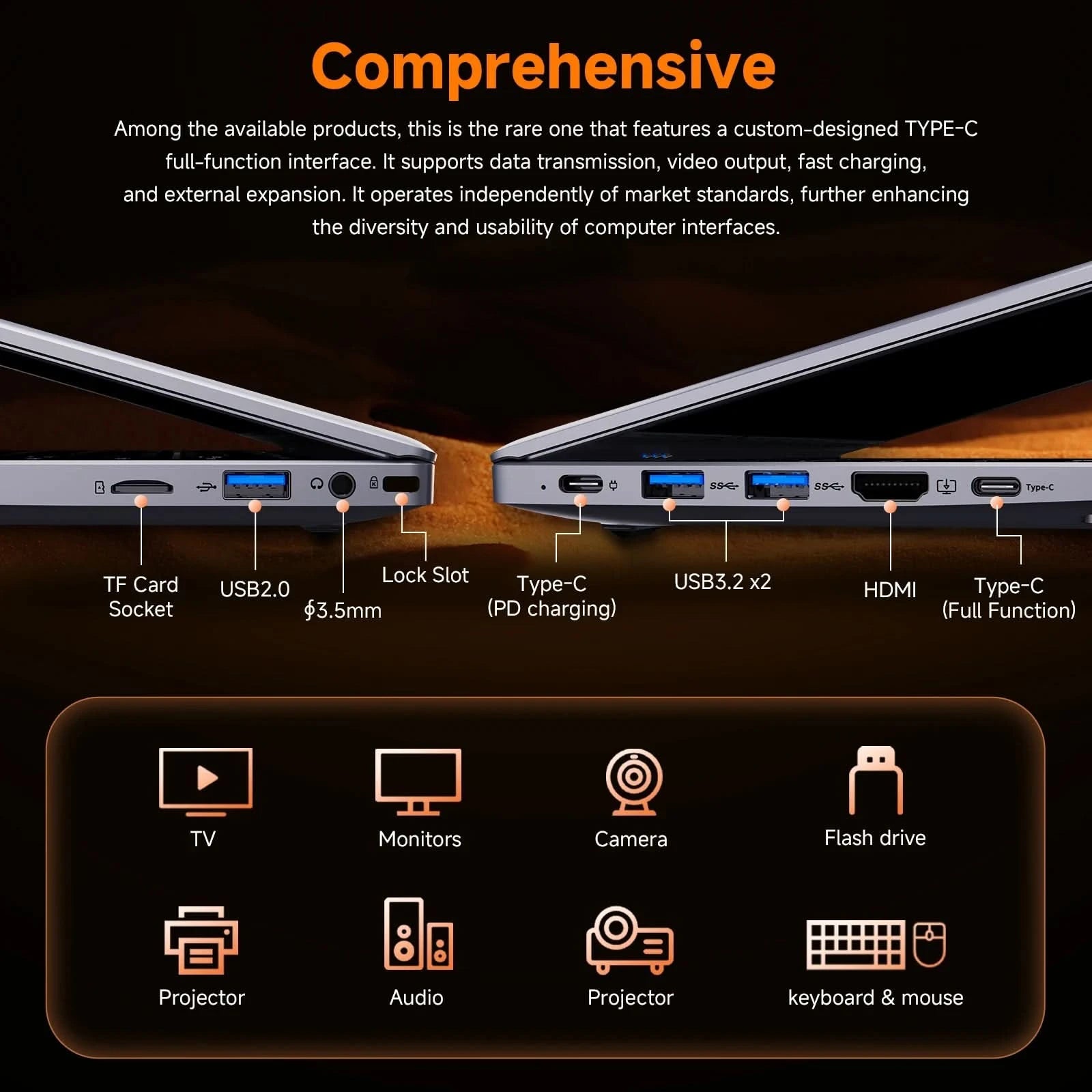 14 Inch Business Laptop Notebook PC CPU AMD3020E 8GB RAM 256GB SSD Storage Windows 11 Fingerprint Recognition Backlit Keyboard