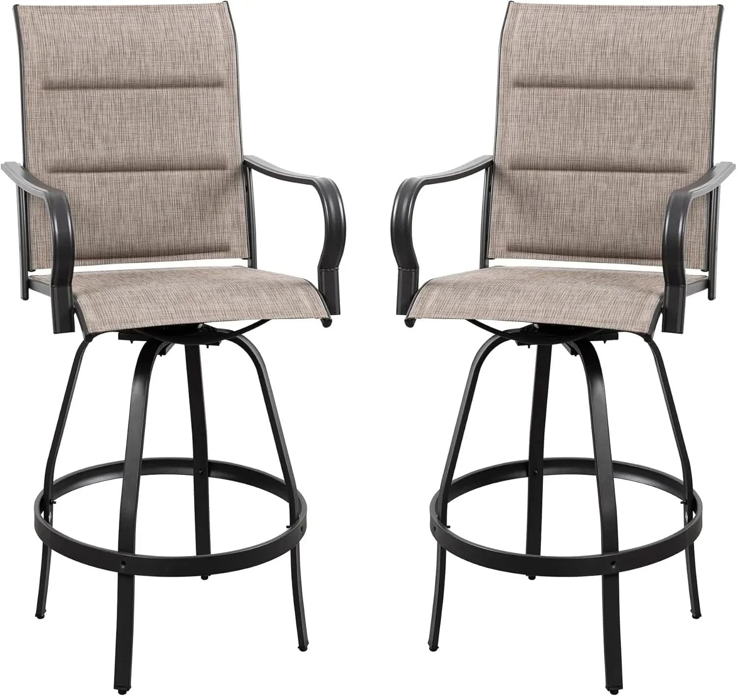 2 Piece Outdoor Patio Swivel Bar Chairs, All Weather Padded Sling Textile High Top Bar Stools, Bistro Set for Backyard