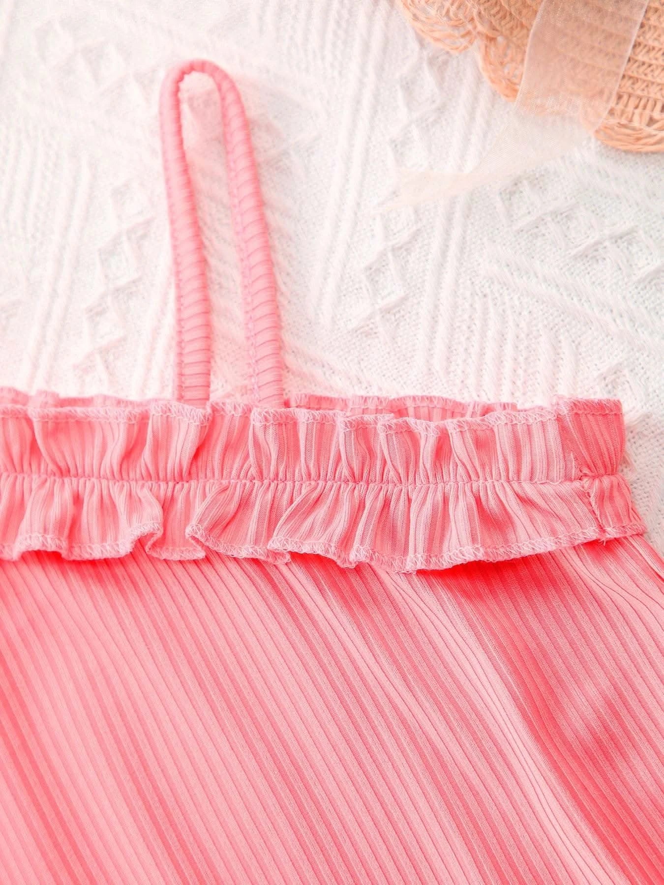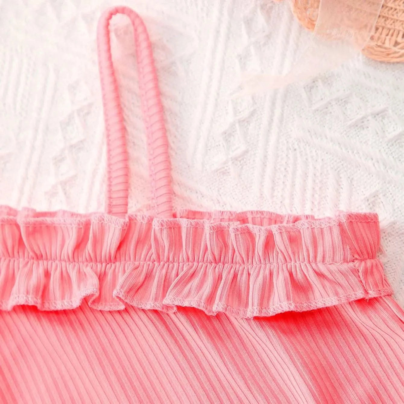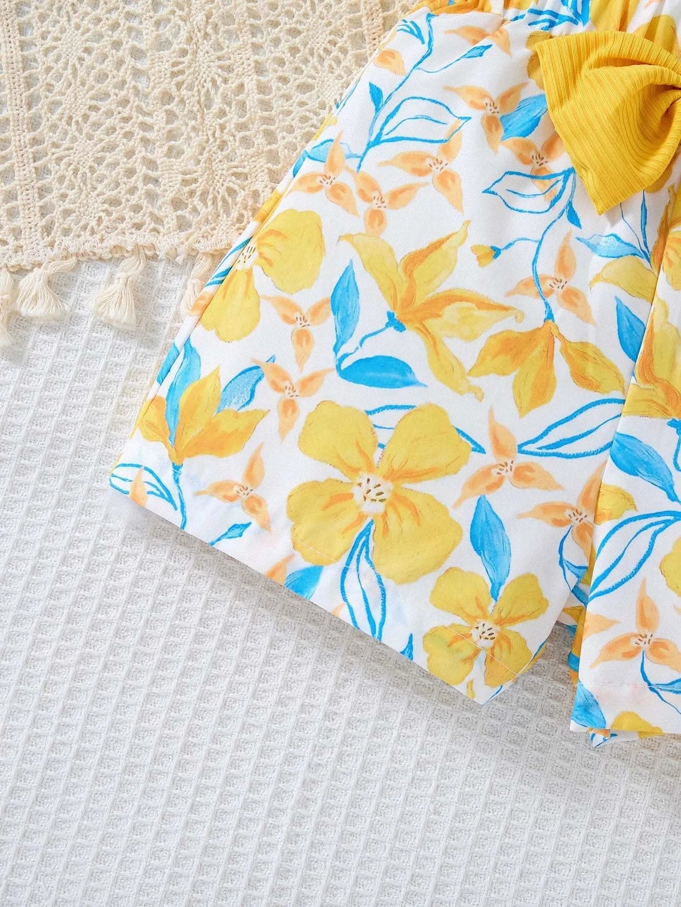2025 Newborn Girl Baby Summer Sling Sleeveless Cotton Casual Daily Big Bow Print Baby Clothing Set