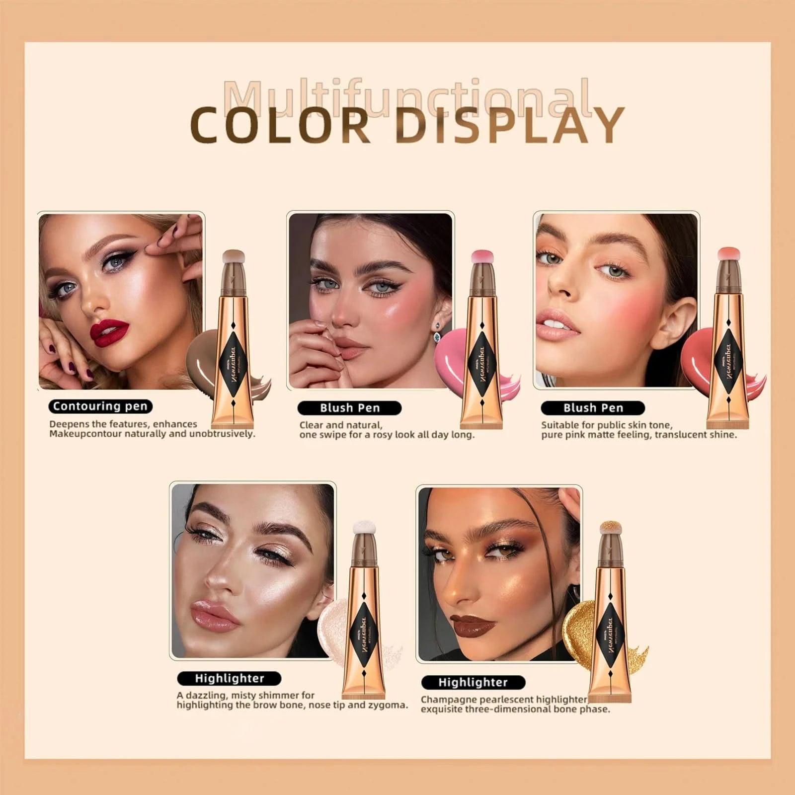 3 Pcs Liquid Contour,Liquid Highlighter,Liquid Blush Stick Makeup Kit, Luminizer Fair Contour+Pink Blush +Pearl White Highlight