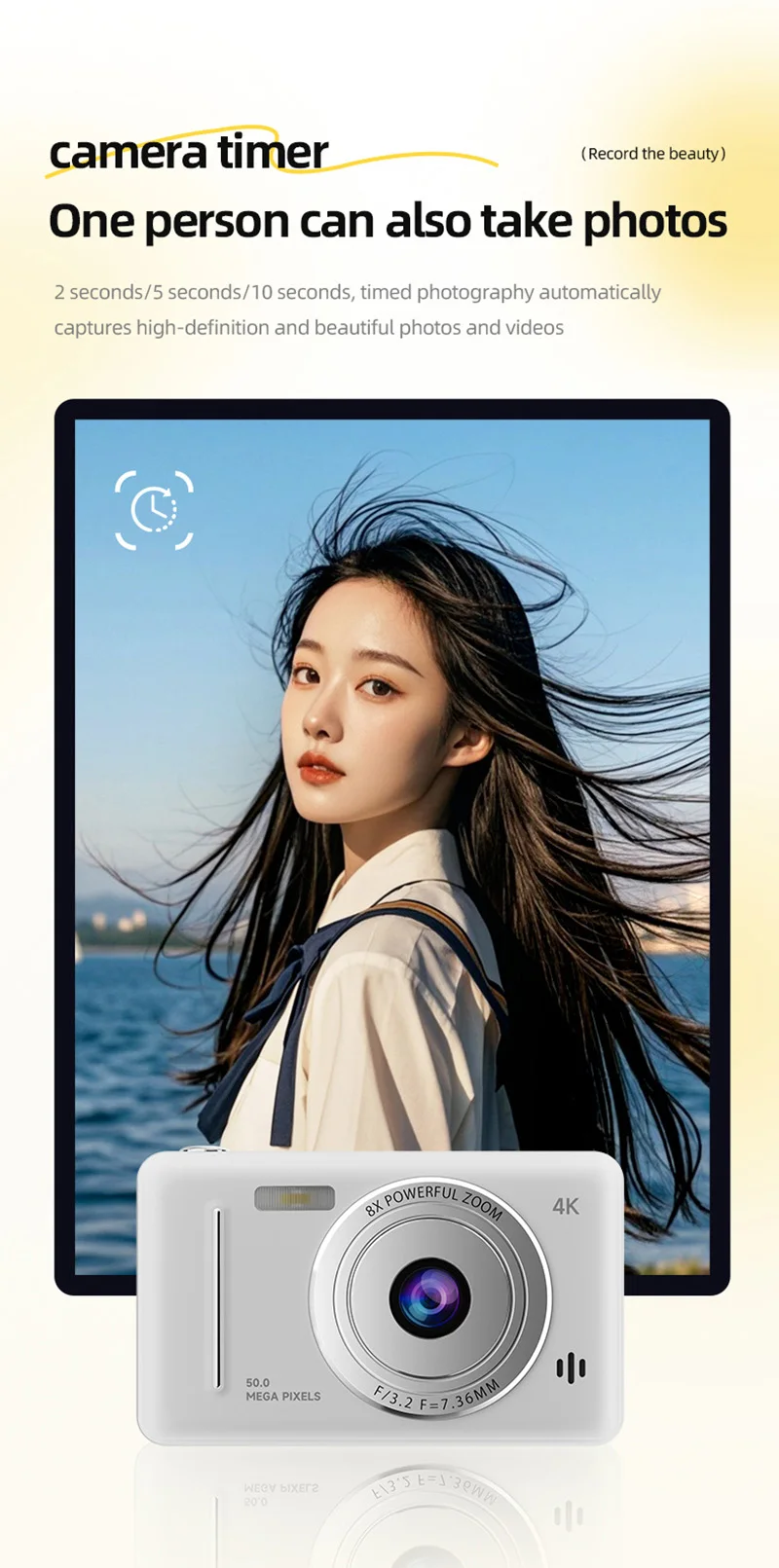 Supports 4K ultra-high-definition video recording, with delicate picture quality and vivid colors, perfectly presenting every moving moment. Whether it is travel records or daily videos, you can shoot high-quality videos to meet various shooting needs.