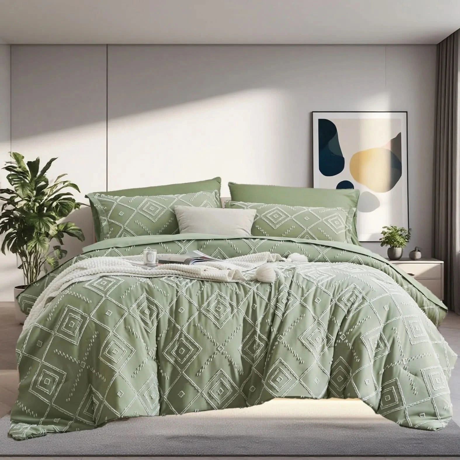 Inclusive Bedding Set: This queen set includes everything needed for a cozy bed: 1 Comforter , 2 Pillowcases, 2 Pillow Shams , 1 Fitted Sheet , 1 Flat Sheet.