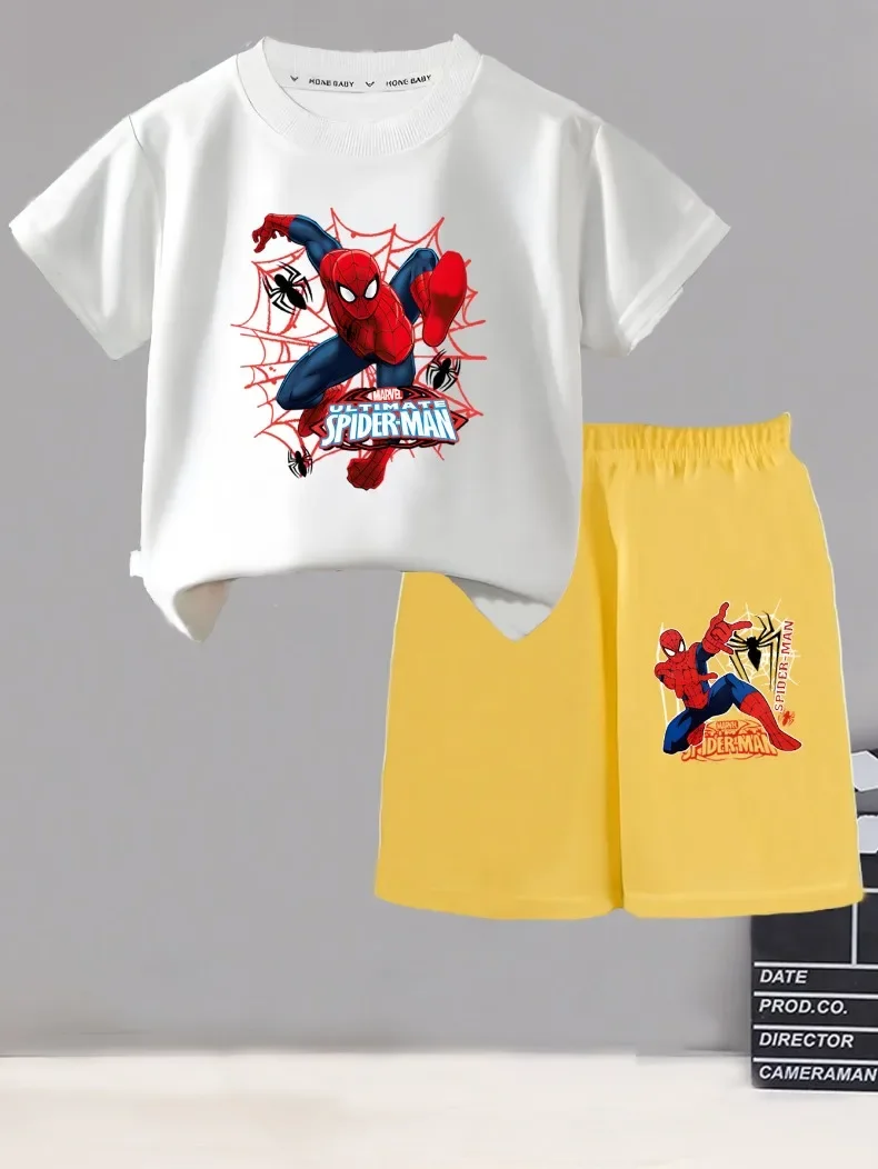 Anime Spiderman Boys T Shirt Shorts 2pcs Sets Breathable Waffle Fabric Kids Sport Clothing Set Children Casual Outfits