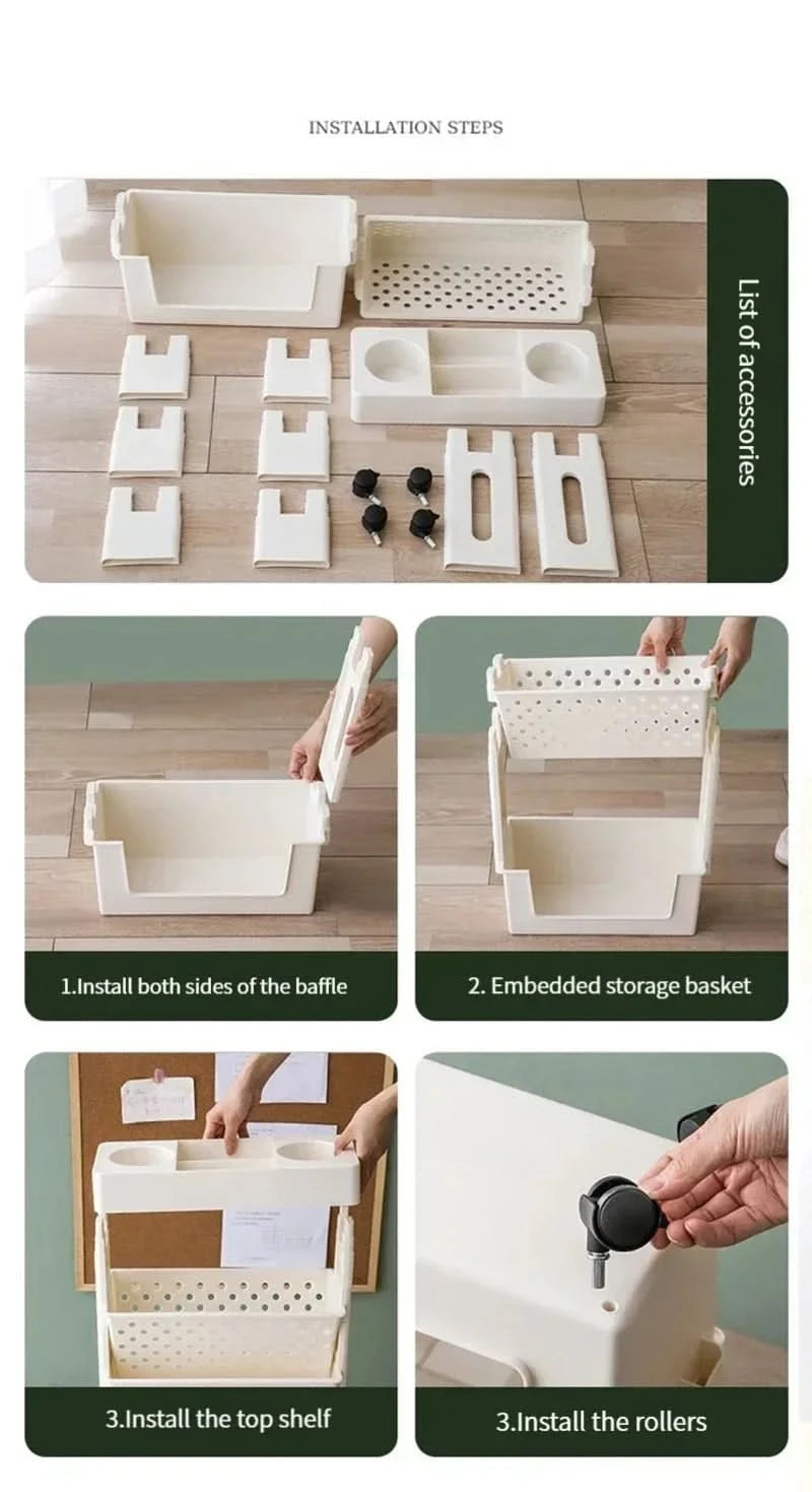 5.Multi-purpose Storage Cart: designed for space saving and easy transport.