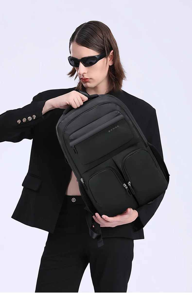 BANGE Large Capacity Men Backpacks for 15.6 Laptop Business Travel Women Backpack Waterproof School Bags with Mesh Side Pockets