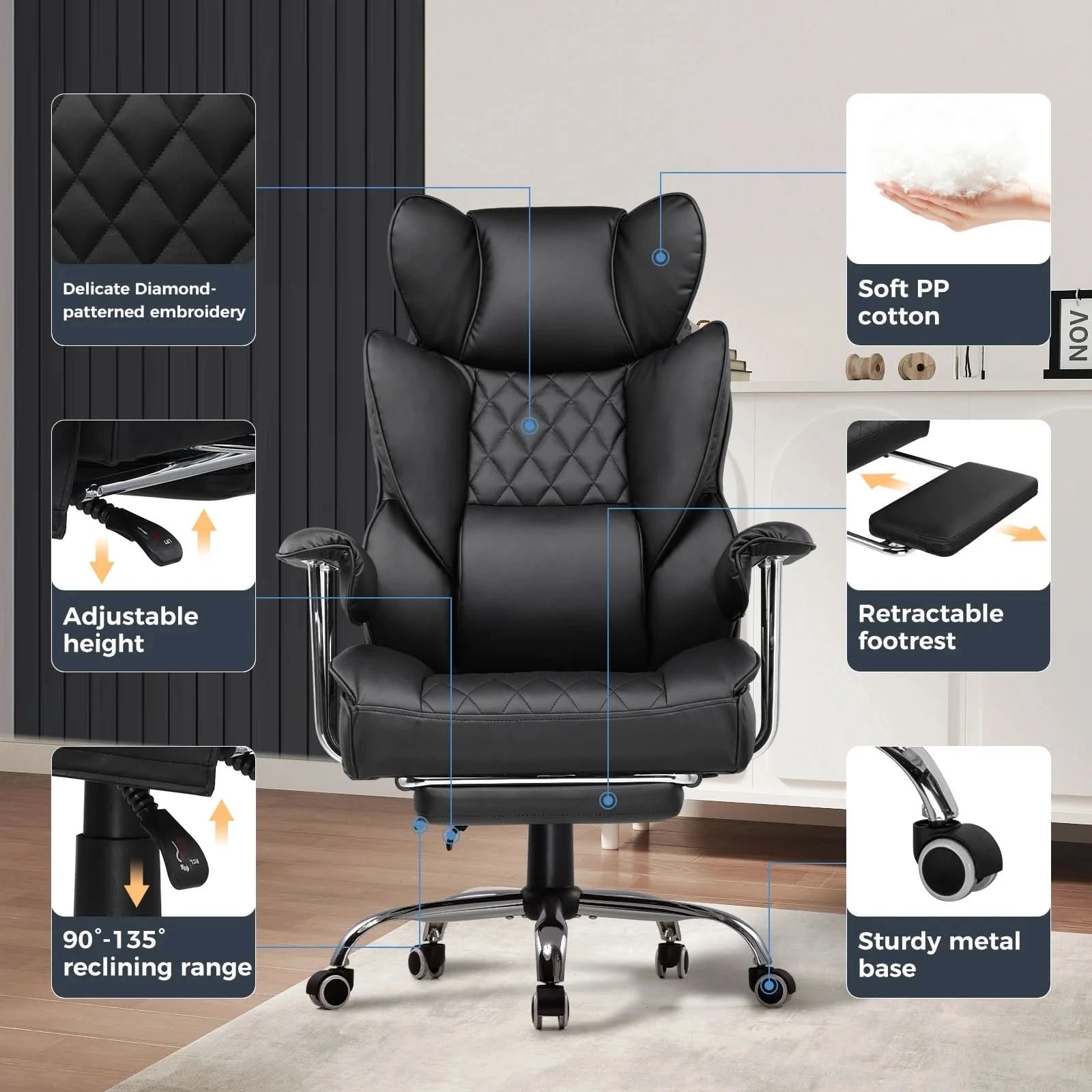 Big and Tall Gaming Chair with Pocket Spring Lumbar Support, Ergonomic Office Chair with Footrest
