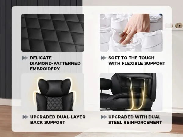 【versatile adjustments for multiple scenarios】offers 10cm height adjustment to fit users from 5'1" to 6'2."The backrest reclines from 90° To 135°, meet the needs of work, reading, entertainment, and relaxation.The 360° Swivel and smooth-rolling casters make mobility effortless in any setting<br>