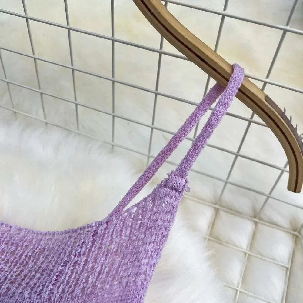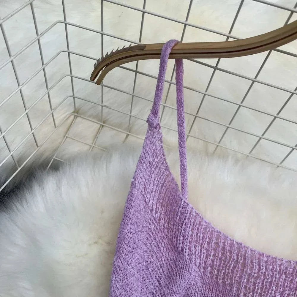 Blue/purple Summer Knit Sexy Strap Dress Women Tank Elatic Waist Bodycon Sundress Female Beach Split Backless Maxi Long Dress