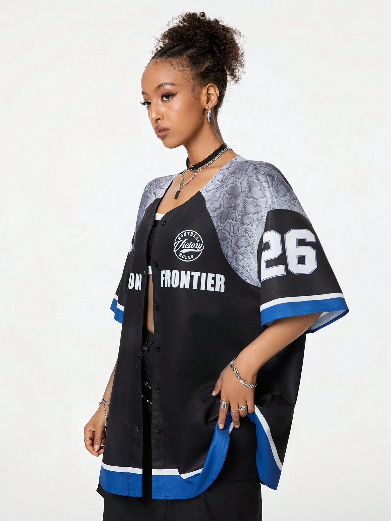 Boston Printed 2024 Summer Oversize Blouse Women Streetwear Baseball Shirt Cool Hip Hop America Half Sleeve Button Up Tops