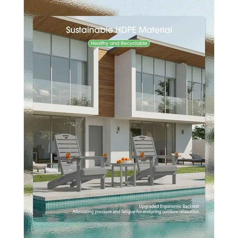 Chairs Set of 2, Outdoor Fire Pit Chairs,with Cup Holder, Lawn Chair for Deck, Patio, HDPE All-Weather Chairs