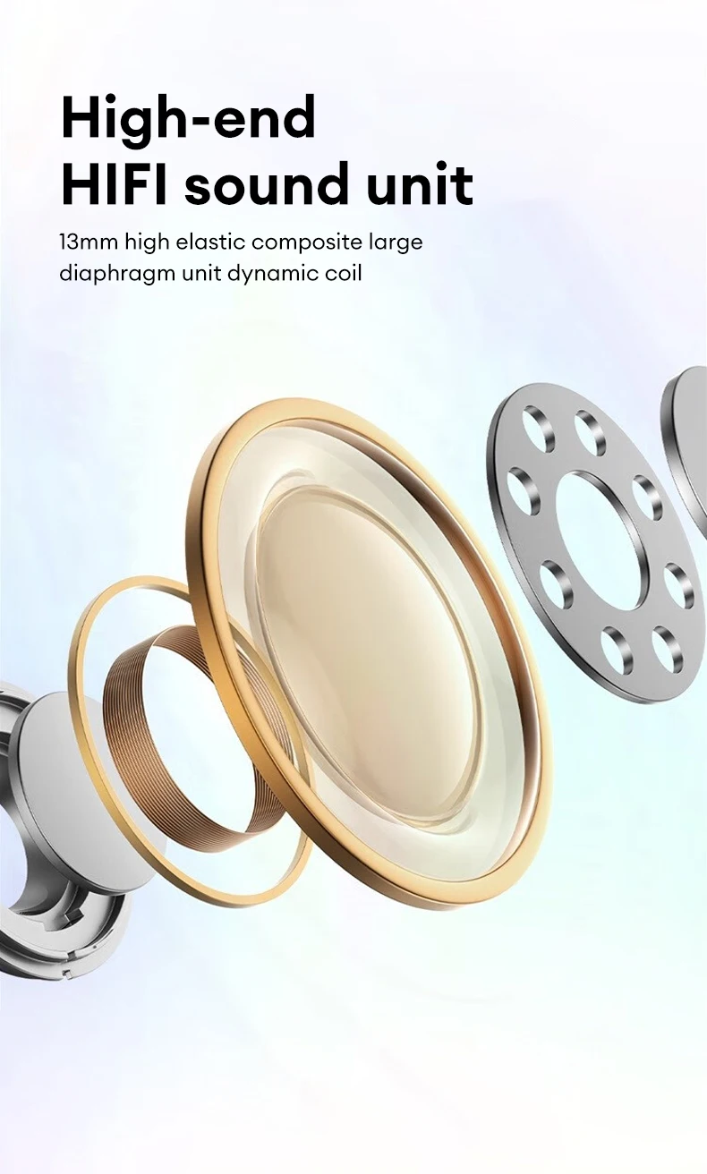 4.[High-Quality HIFI Sound]: 13mm composite diaphragm delivers rich, dynamic sound.