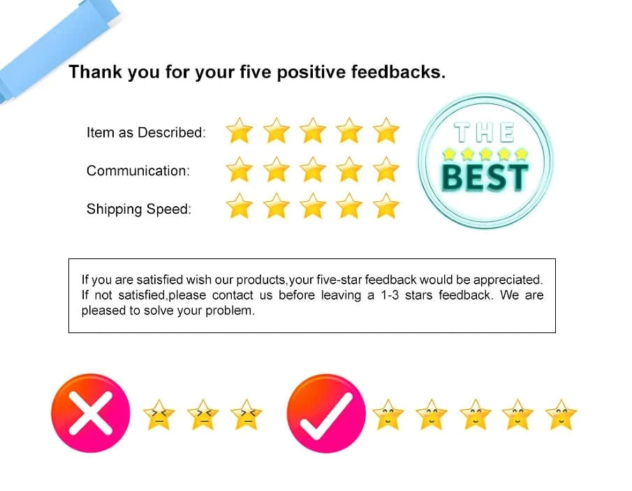 We are trying out best to satisfy our customers. We sincerely hope that you can leave us a positive feedback. For any reason you are not satisfied with your order, please contact us through (My Messages) or (Ask Seller Questions), Trade manager before leaving neutral or negative feedback. We will do our best to resolve any problems and satisfy your needs.