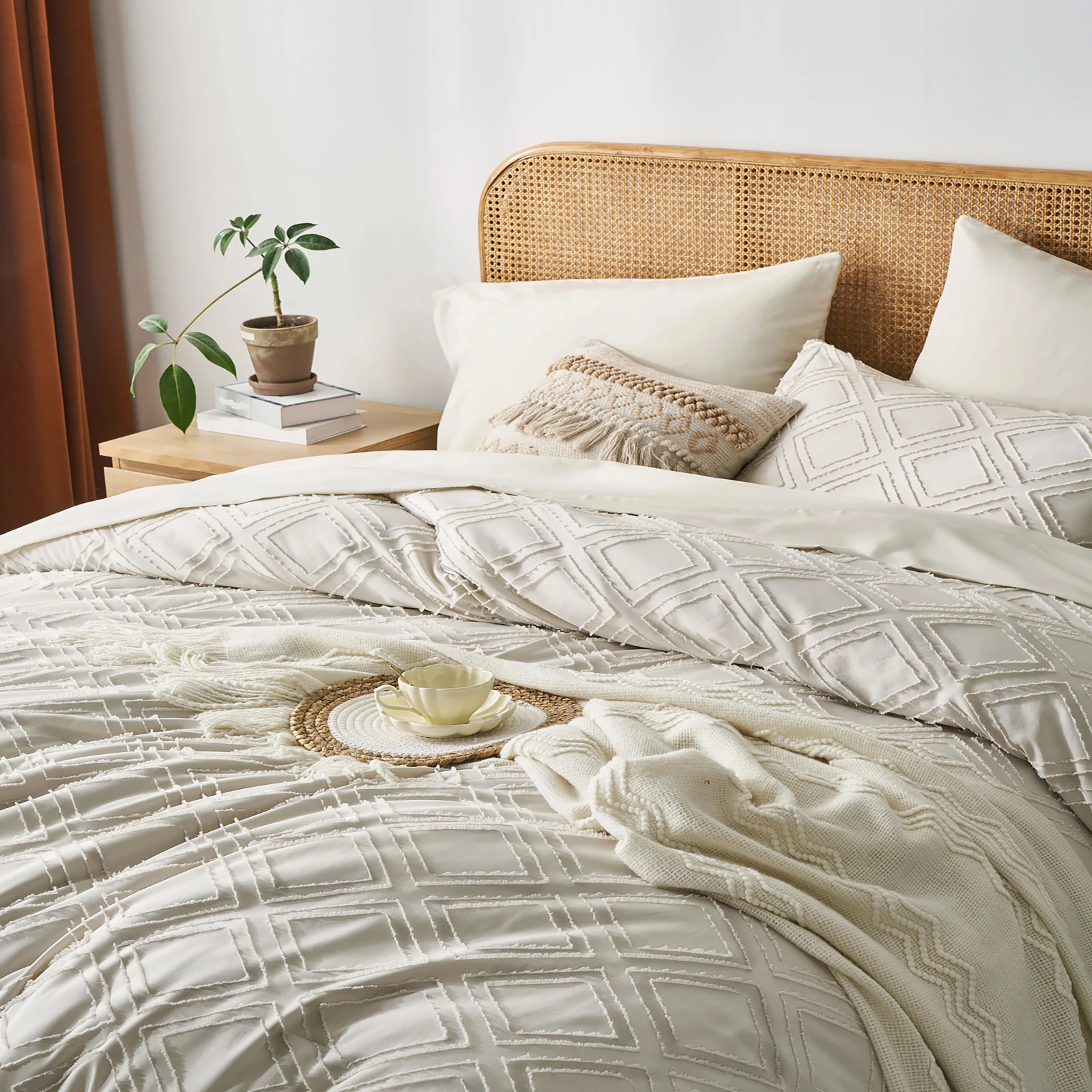 Elegant Home Decor: This queen bedding set features a boho design with a geometry pattern, adding a touch of sophistication to any bedroom. Give the gift of elegant coziness to your loved ones, whether it's for Mother's Day, Valentine's Day, Christmas, or just to show you care.