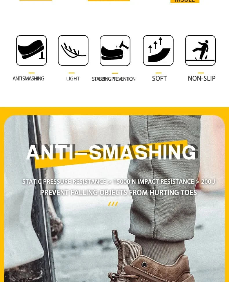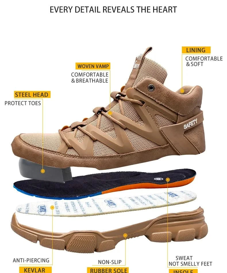 Composite Toe Work Boots Mens Puncture-Proof Midsole Non-Slip Breathable & Comfort Fit for Warehouse Use Anti-smash Work Boots