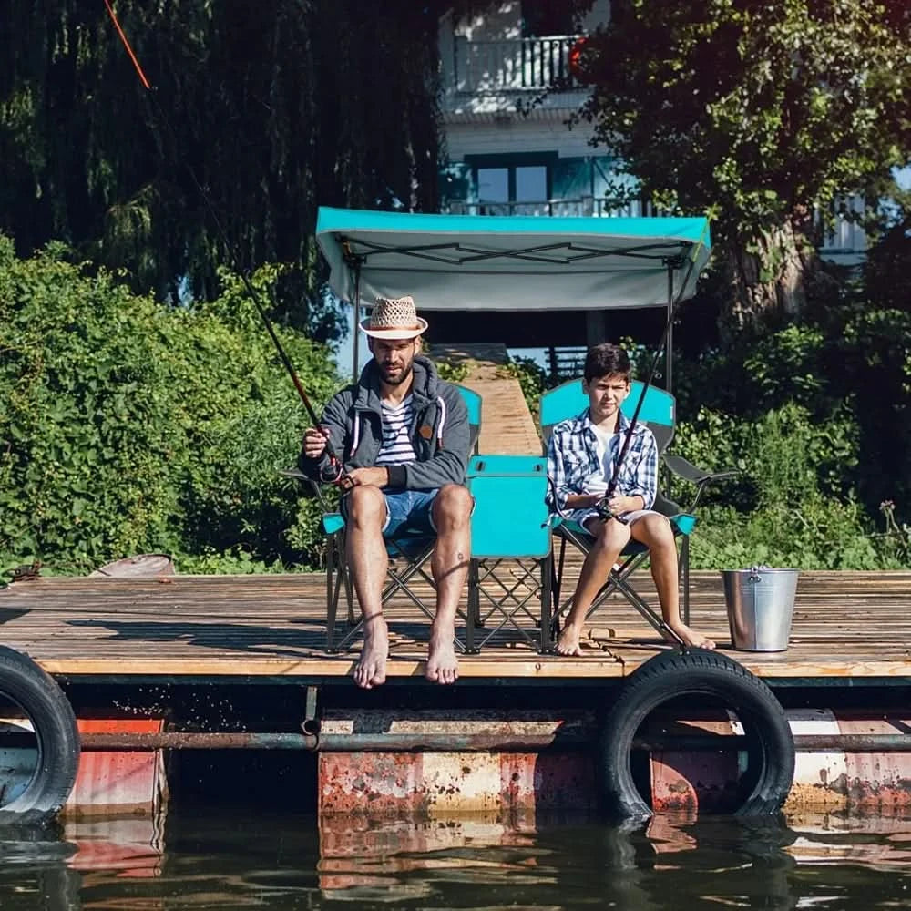 • 🏖️【Foldable Design for Storage & Transport】This fold up canopy chair can easily fold up to a compact size which will save plenty of space for storage. Coming with a cy bag which is made of oxford fabric, this double chairs can be protected well inside for easy transportation. What’s more, this lightweight cooler chair with the portable design makes it very easy to cy and move.
