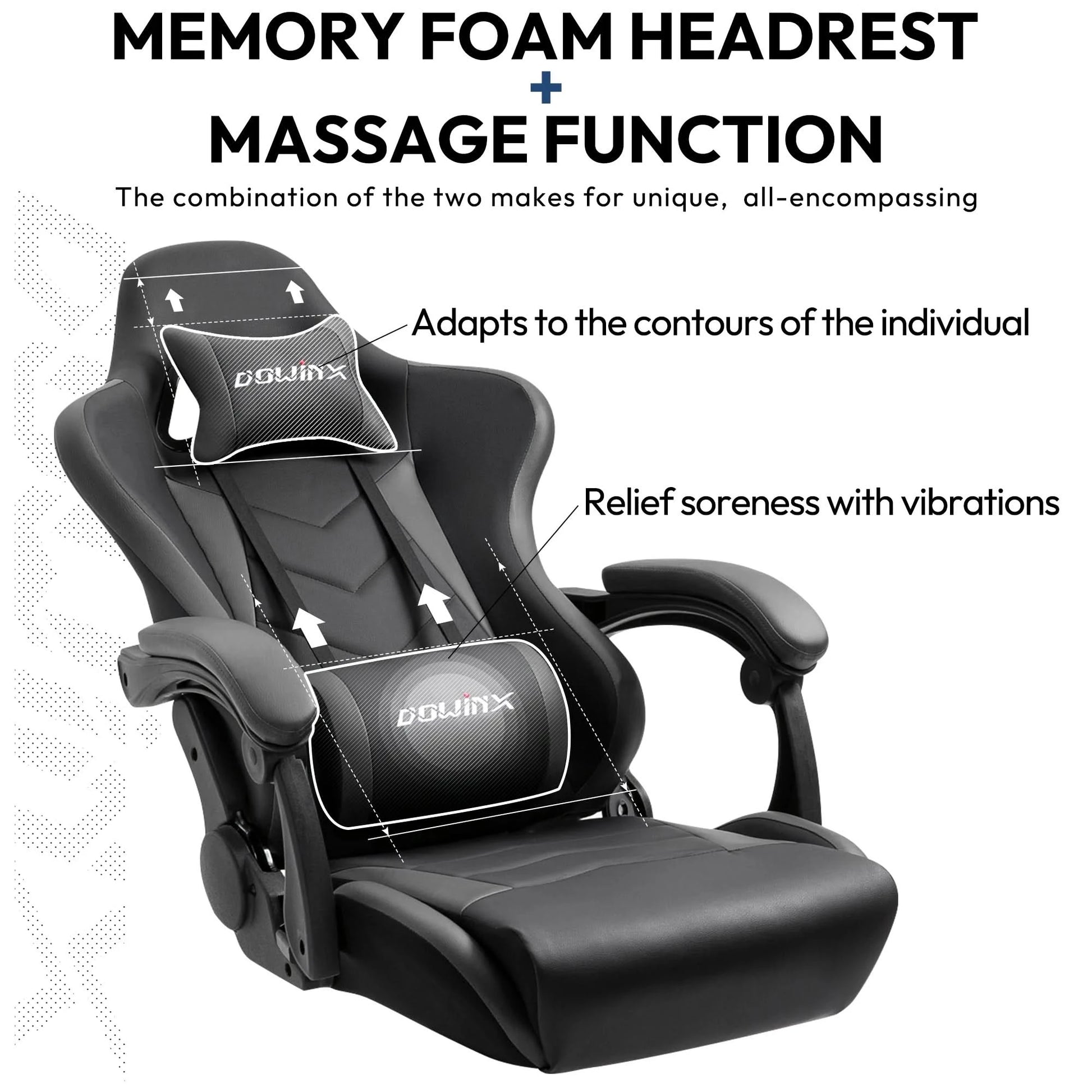 Dowinx Gaming Chair Ergonomic Office Recliner for Computer with Massage Lumbar Support, PU Leather E-Sports Gamer Chairs