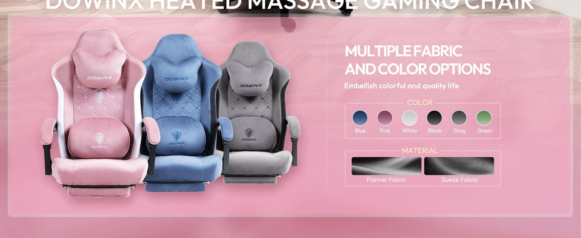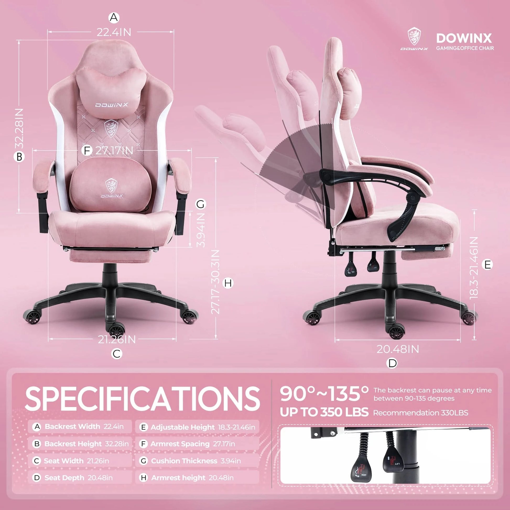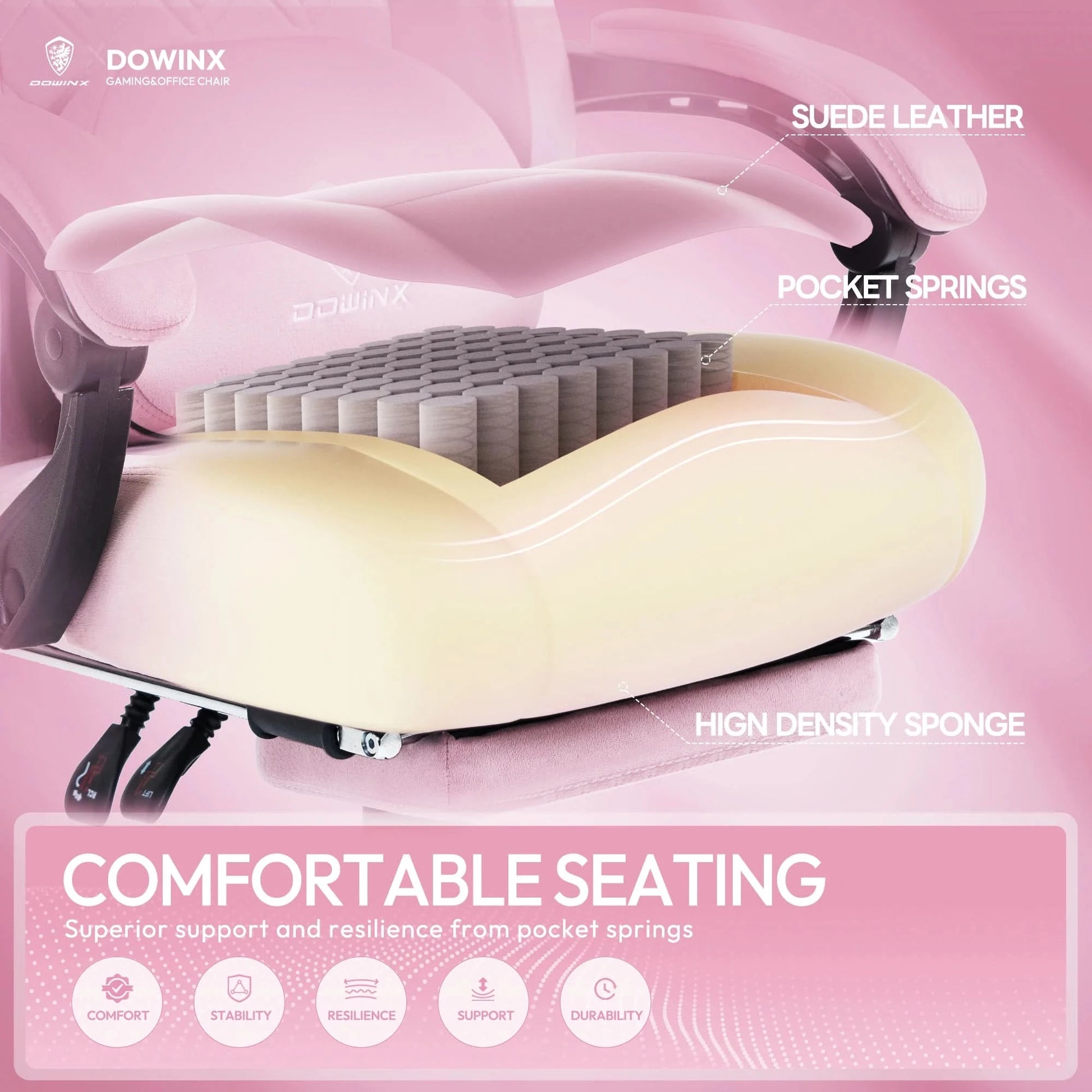 Dowinx Gaming Chair with Heated Massage Lumbar Support, Breathable Fabric Office Chair with Pocket Spring Cushion and Footrest,