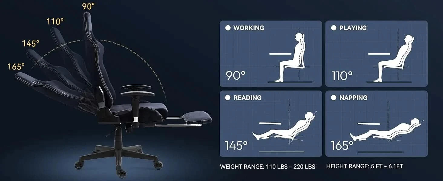 Dowinx Gaming Chair with Massage Lumbar Support, Suede Fabric Ergonomic Computer Chair with Footrest for Adults