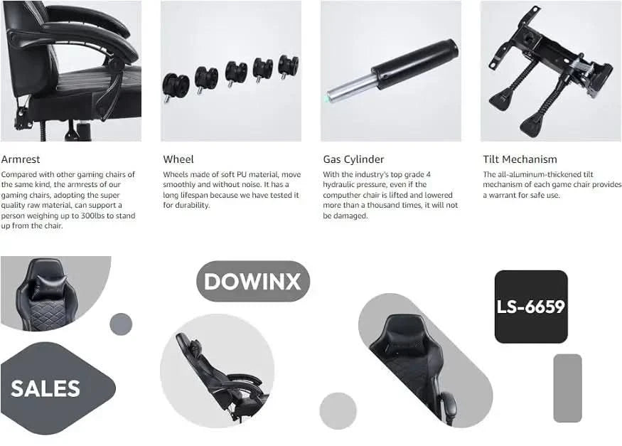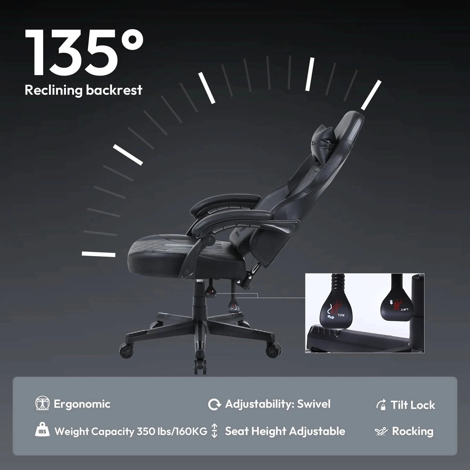 Dowinx Gaming Chair with Pocket Spring Cushion, Ergonomic Computer Chair High Back, Reclining Game Chair Pu Leather 350LBS
