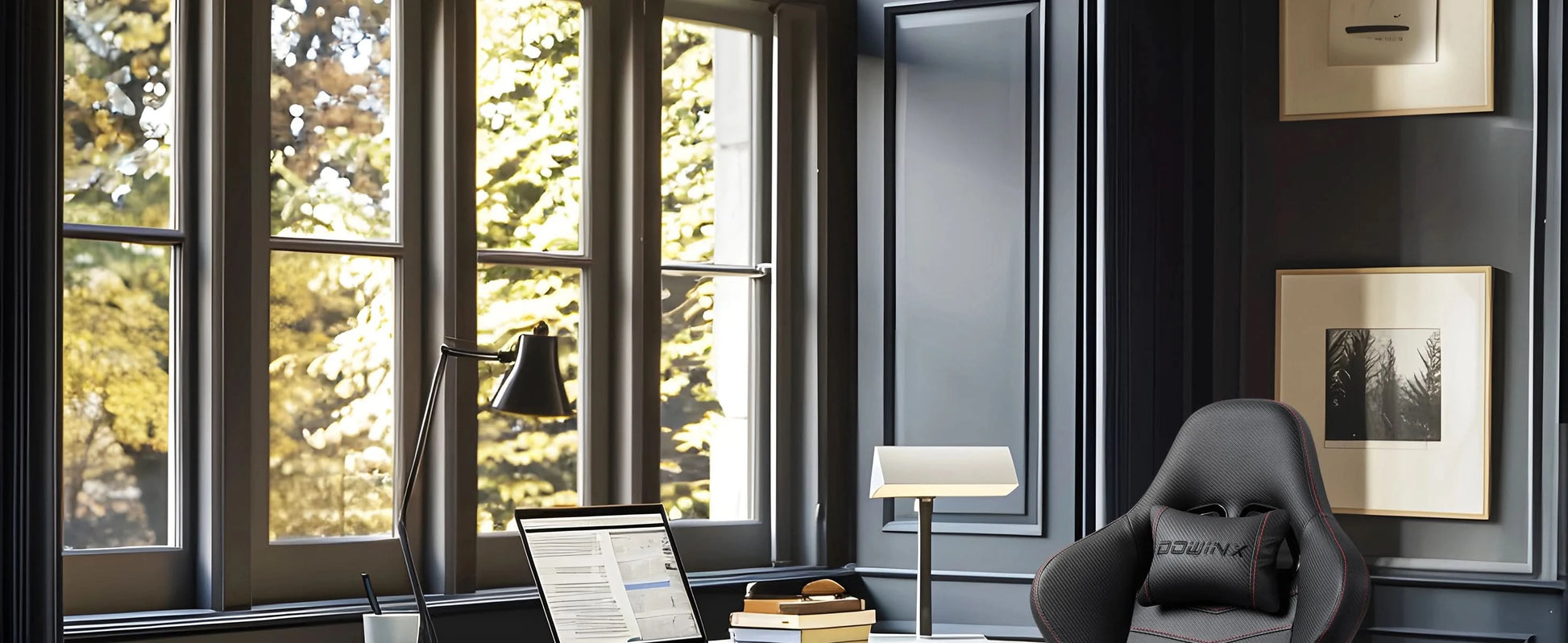 Dowinx Gaming/Office PC Chair with Footrest and Lumbar Support, Vintage Style PU Leather High Back Adjustable Swivel Task Chair