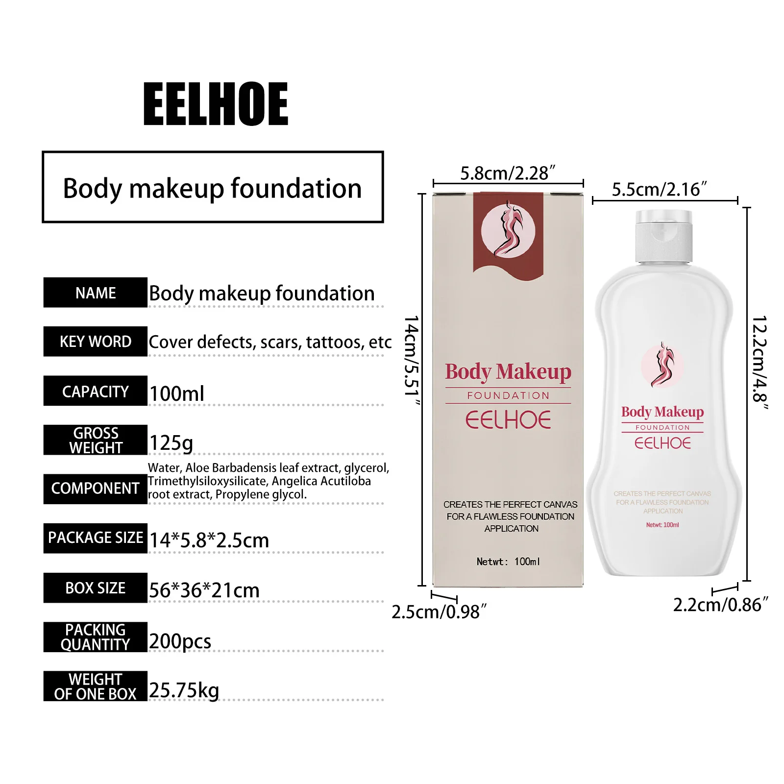 Eelhoe Body Makeup Liquid Foundation Lightening Skin Spots Tattoo Defects Natural Setting Moisturize Lasting Foundation Make Up