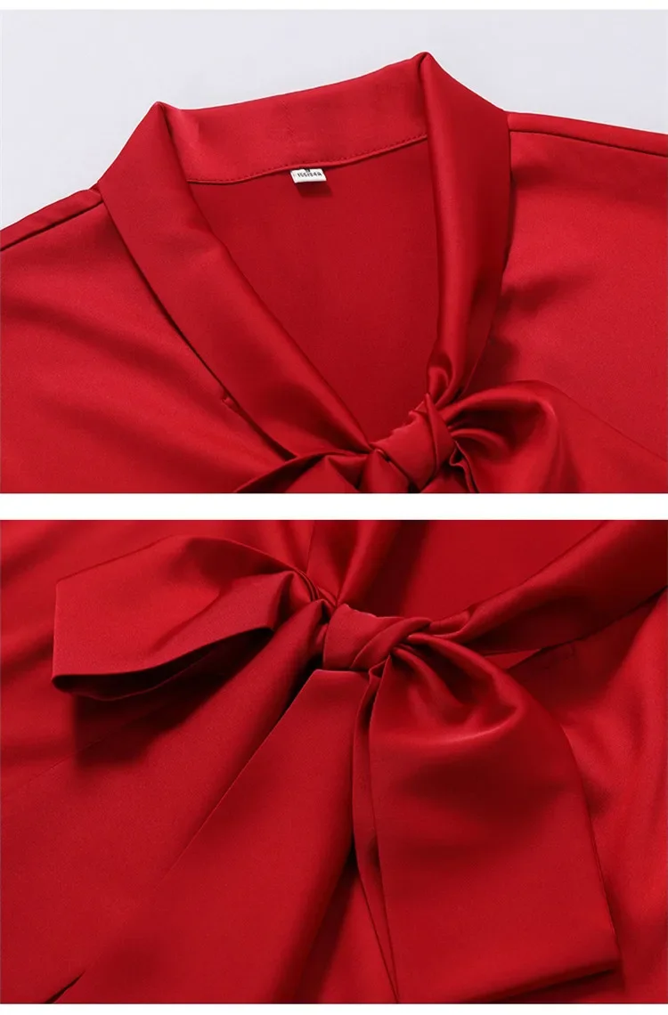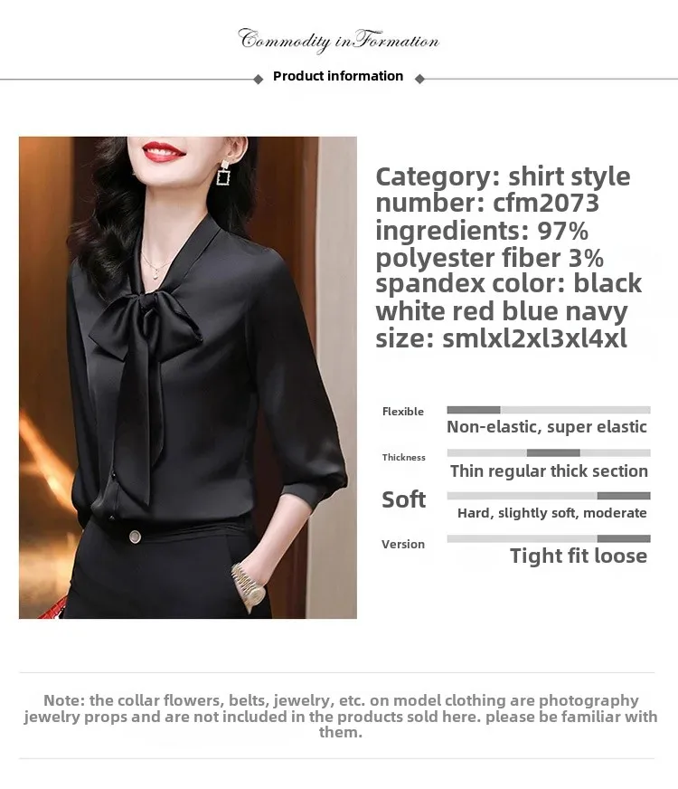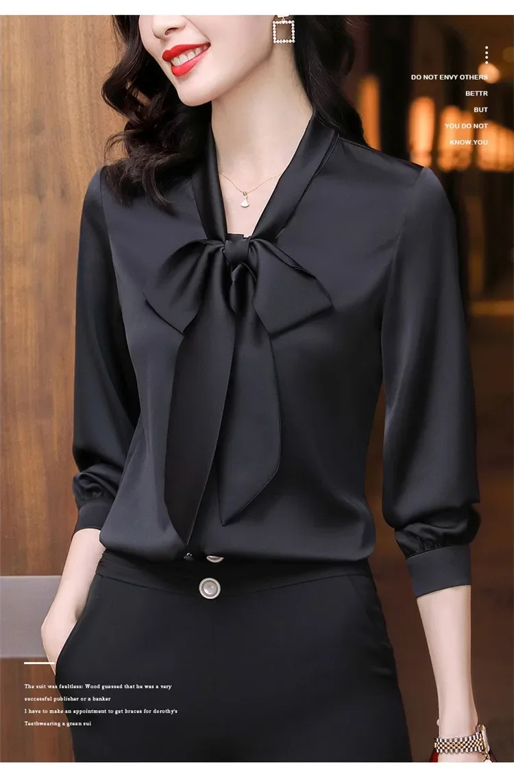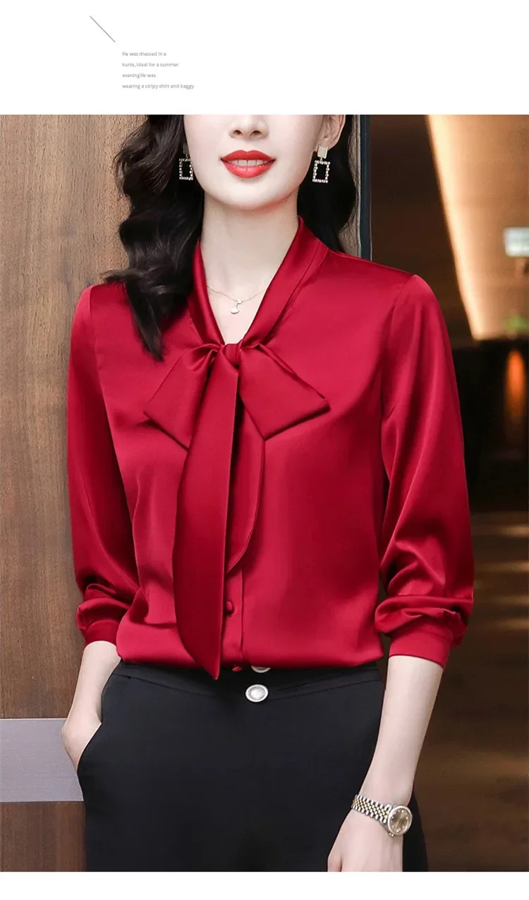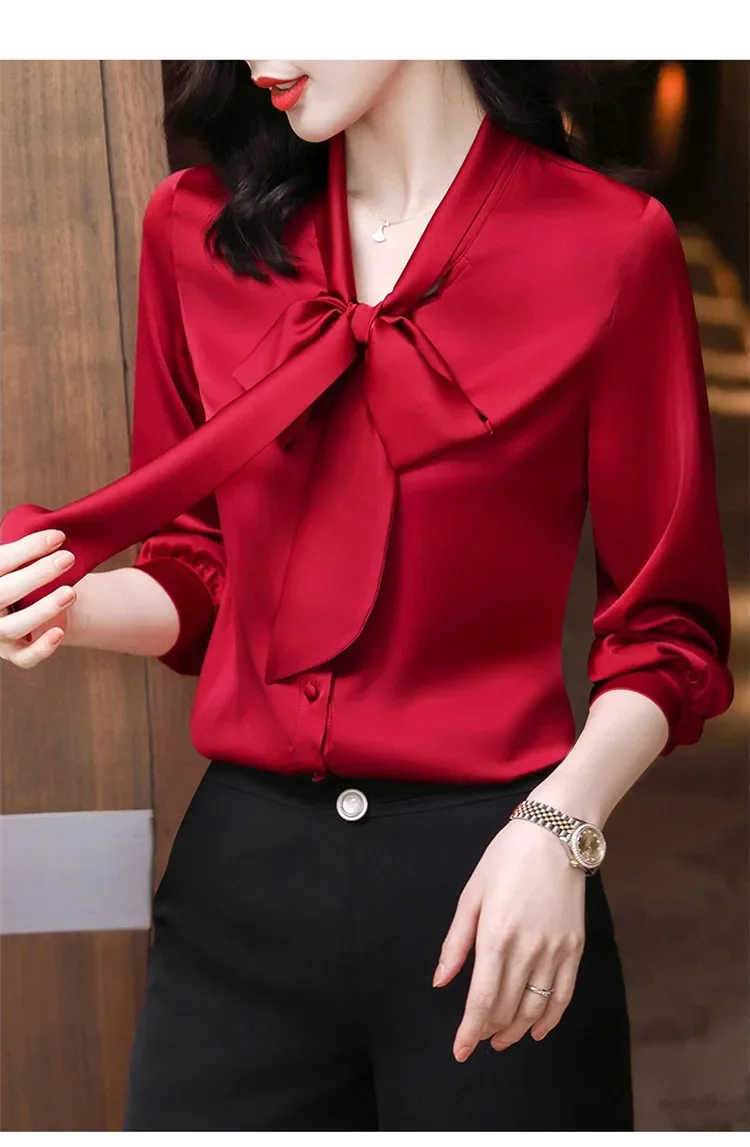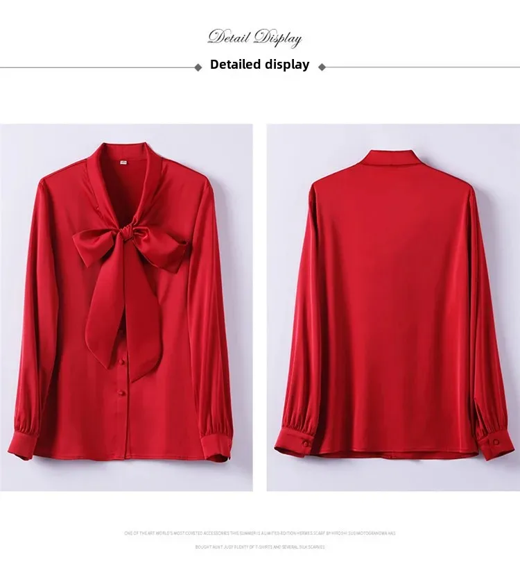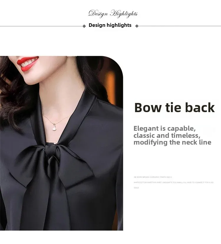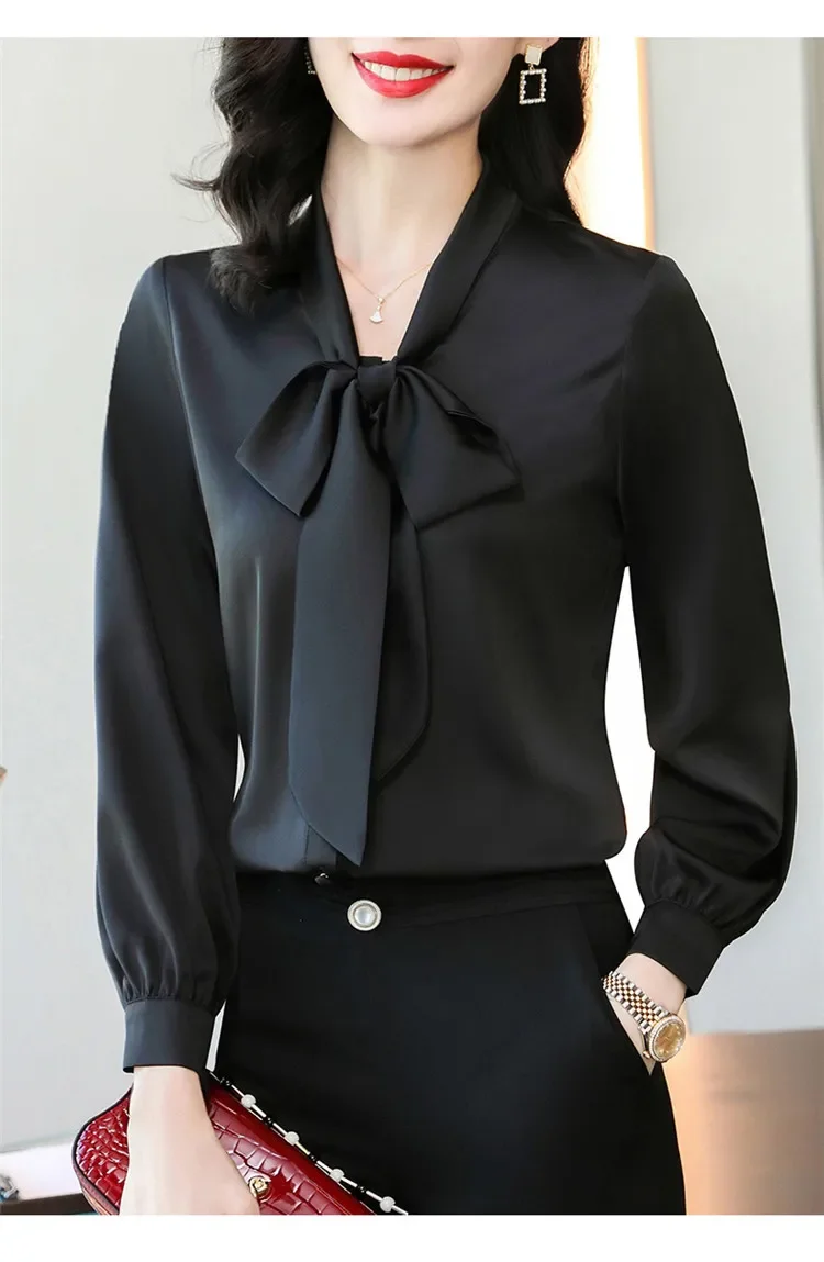 Elegant Pure Color Long Sleeve Women's Shirt with Bow Tie Single Button Open Cardigan Spring Autumn Fashionable Ageless