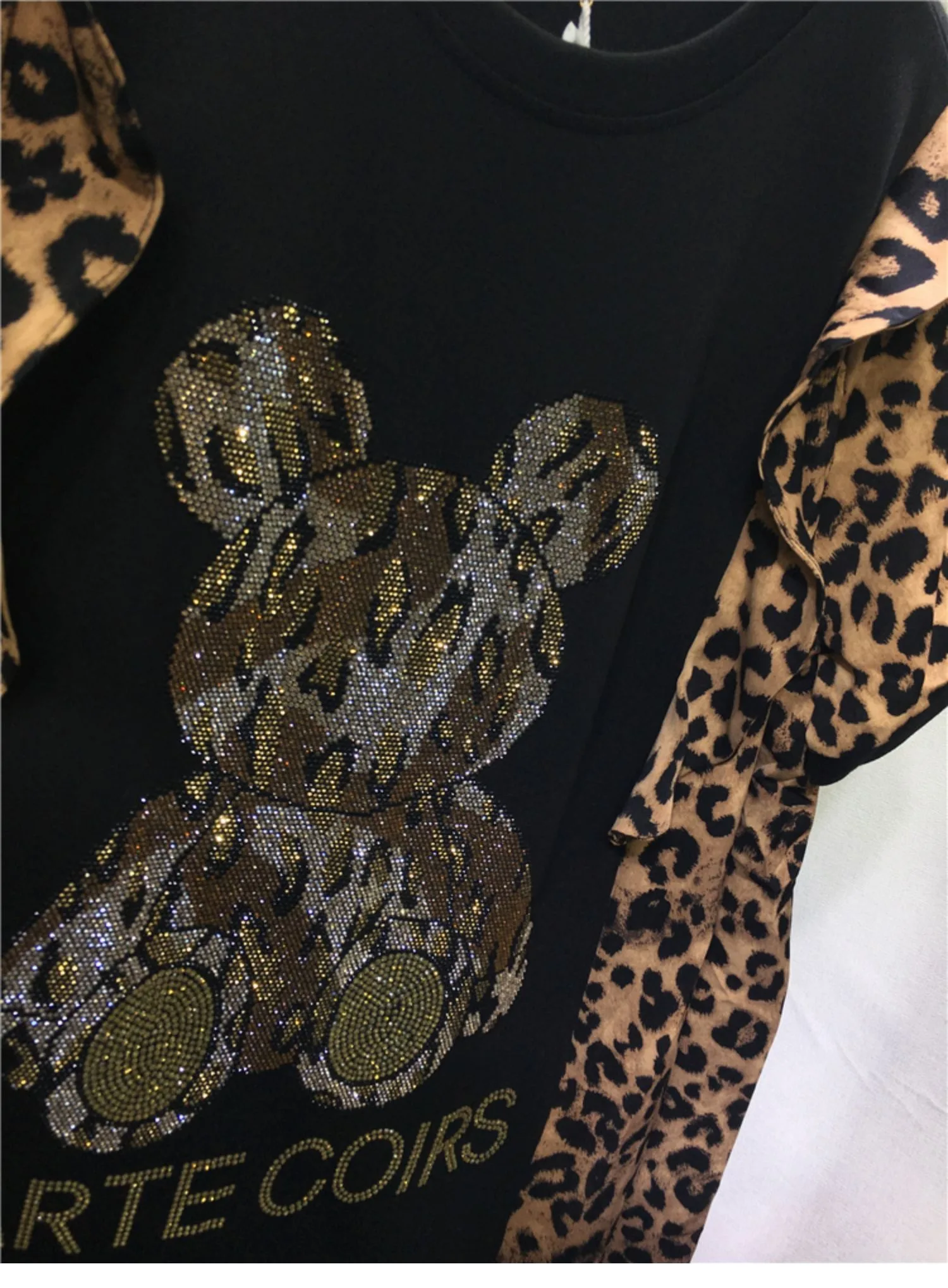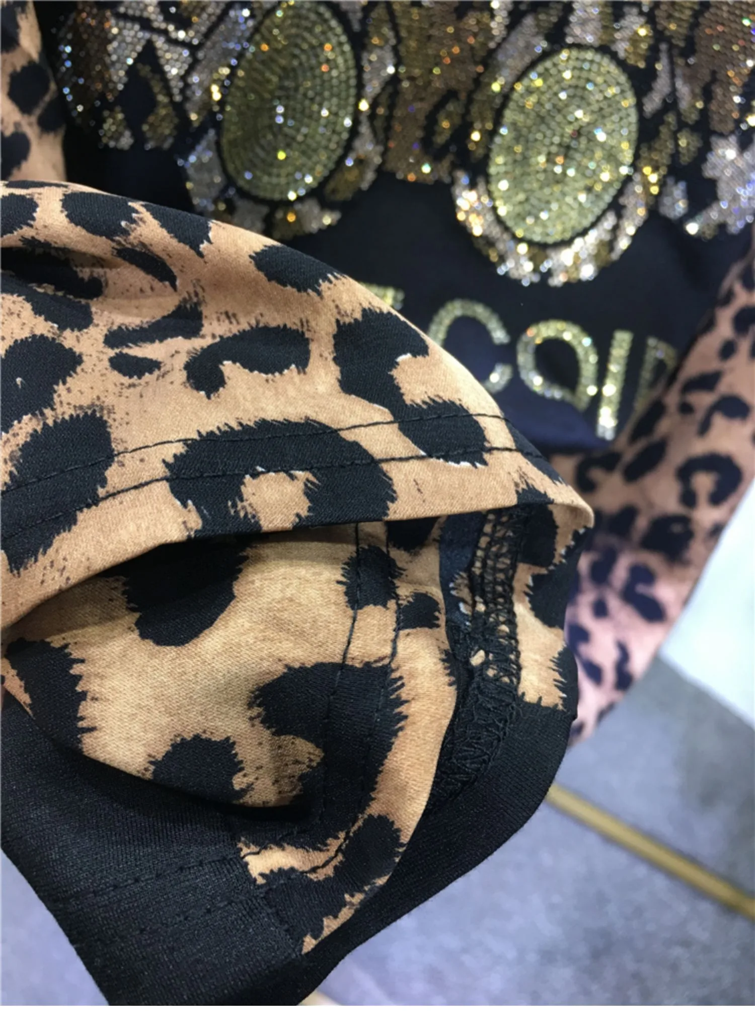 Extra size 300 pounds fat people wear summer women's dress leopard print patchwork bear rhinestone short-sleeved skirt