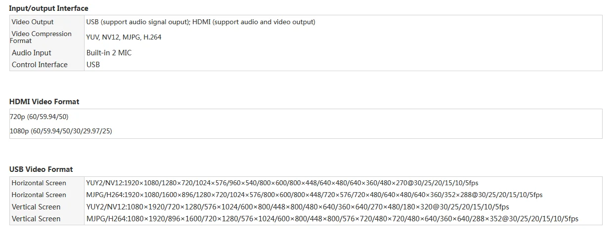 1× Streaming Camera 1× Power Adapter 1× USB3.0 Cable 1× Remote Control 1× Manual |