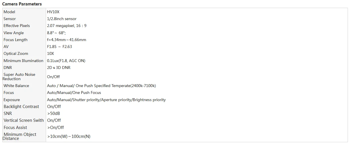 Optical Zoom: 10x - 20x,10X