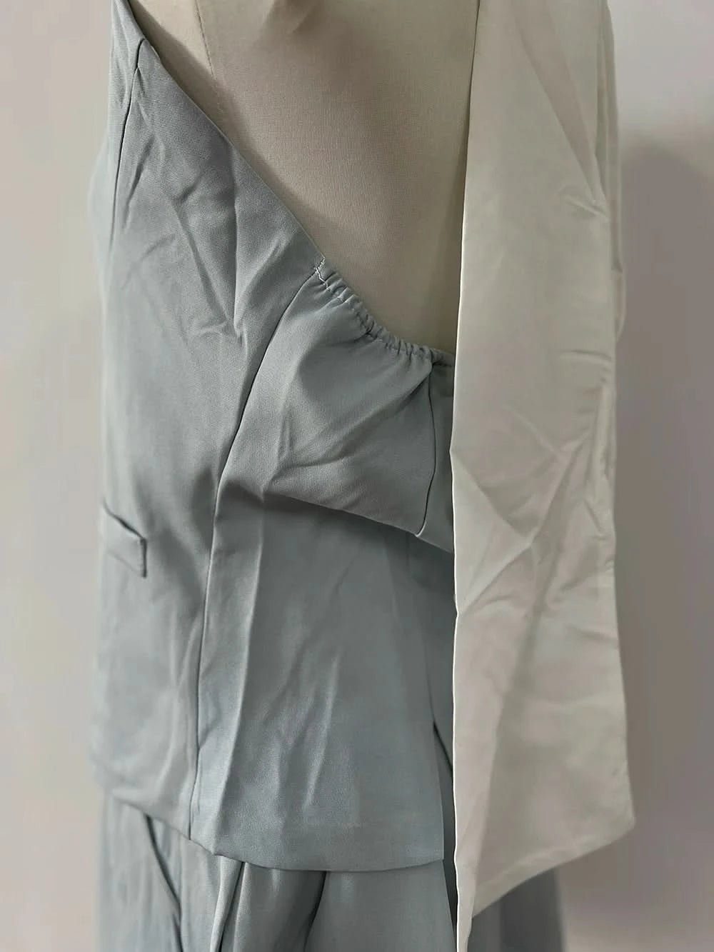 French Spicy Bow Splice Vest Pleated Skirt Two Piece Set Women Backless V-Neck Single Breasted Celebrity Fashion Slim Summer Set