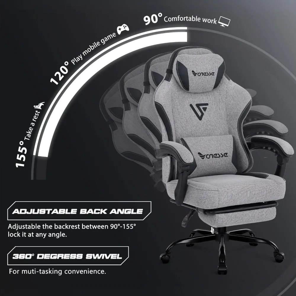 Gaming Chair,Computer Chair Fabric with Pocket Spring Cushion, Office Chair with Footrest and Massage Lumbar Support, Reclining
