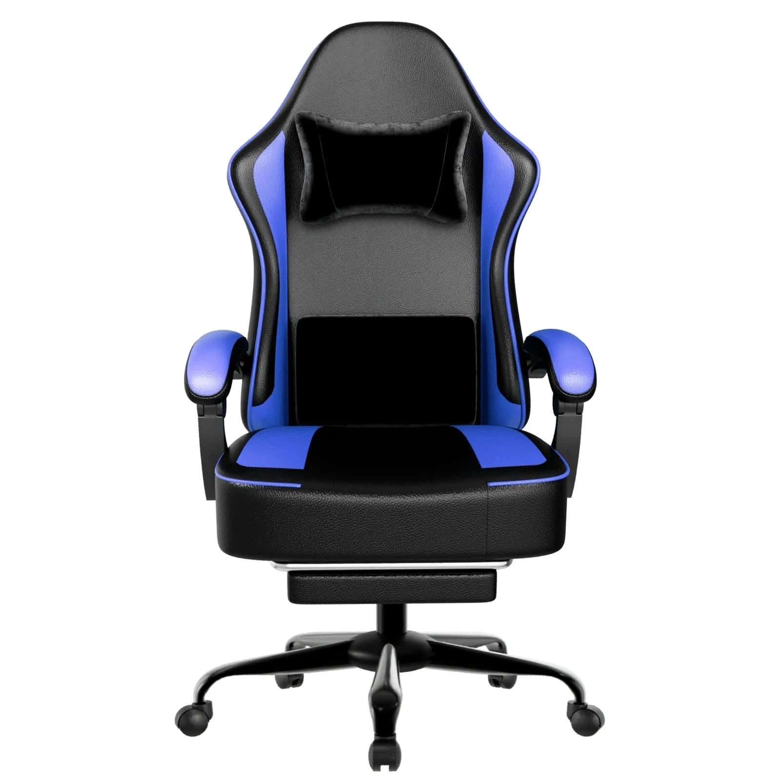 Full-Body Ergonomic Support: The computer gaming chair reclines from 90Β° to 155Β°, and with the telescoping hidden footrest, you can switch between focusing on your work and zero-gravity relaxation. Adjustable head & lumbar pillows and body-hugging backrest care for your spine and eliminate your back fatigue, while the adjusting linkage armrests sync with your posture, no more hunching during long emails.