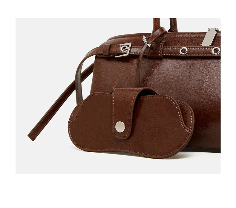 Genuine Leather Women's Baguette Bag Niche Retro Motorcycle Trend Cool belt Handbag New Luxury Design Shoulder Underarm Bag