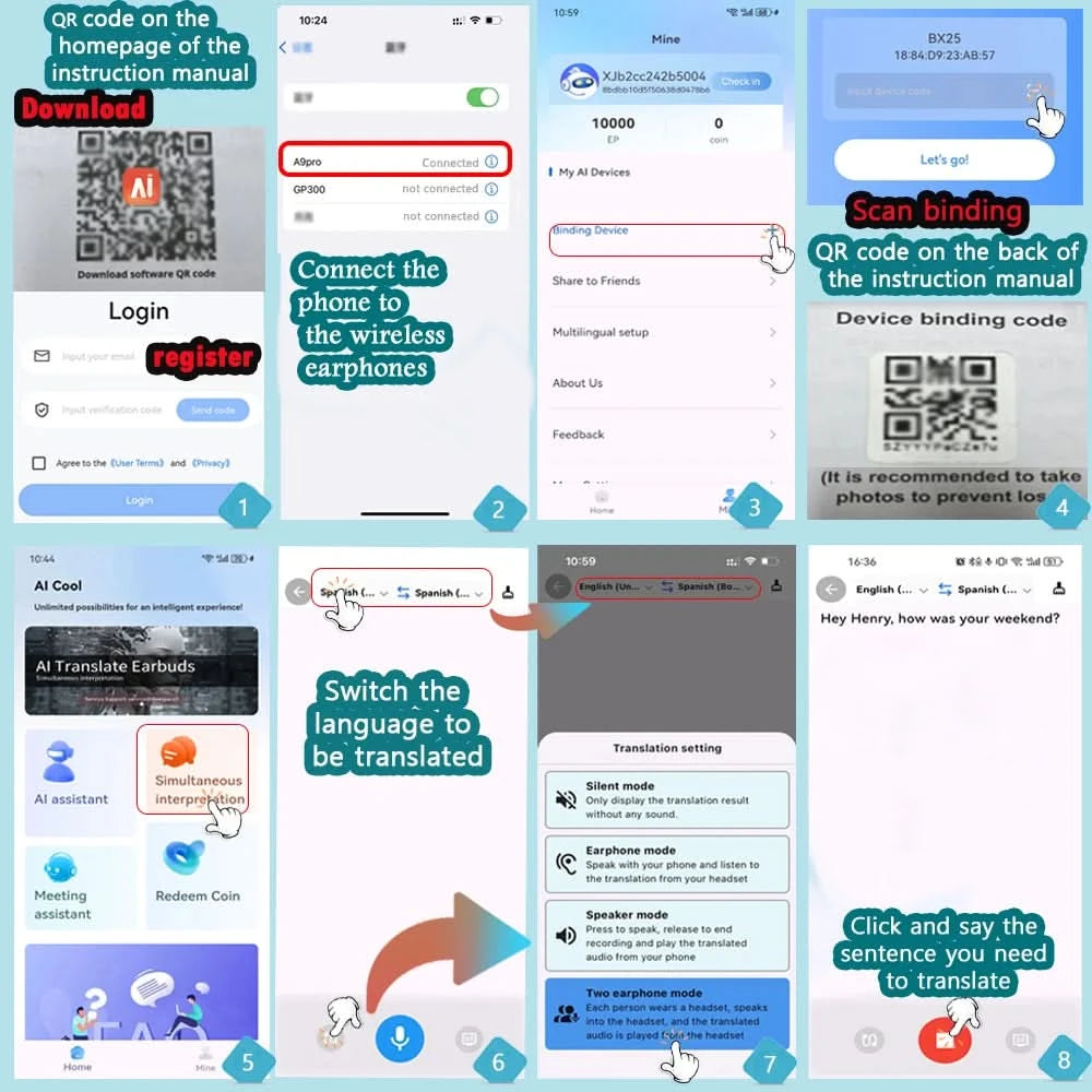 GREATWALL Hanging ear translation headphones, sports high fidelity stereo headphones, can translate 144 languages online