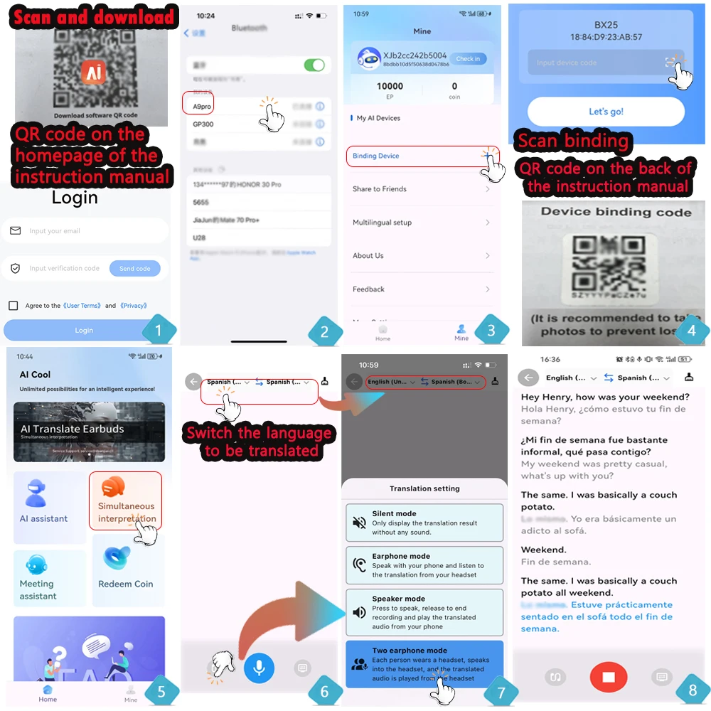 GREATWALL Translation Ear Clip, Touch Control,No Delay,High Definition Sound Quality, Can Translate 144 Languages Online