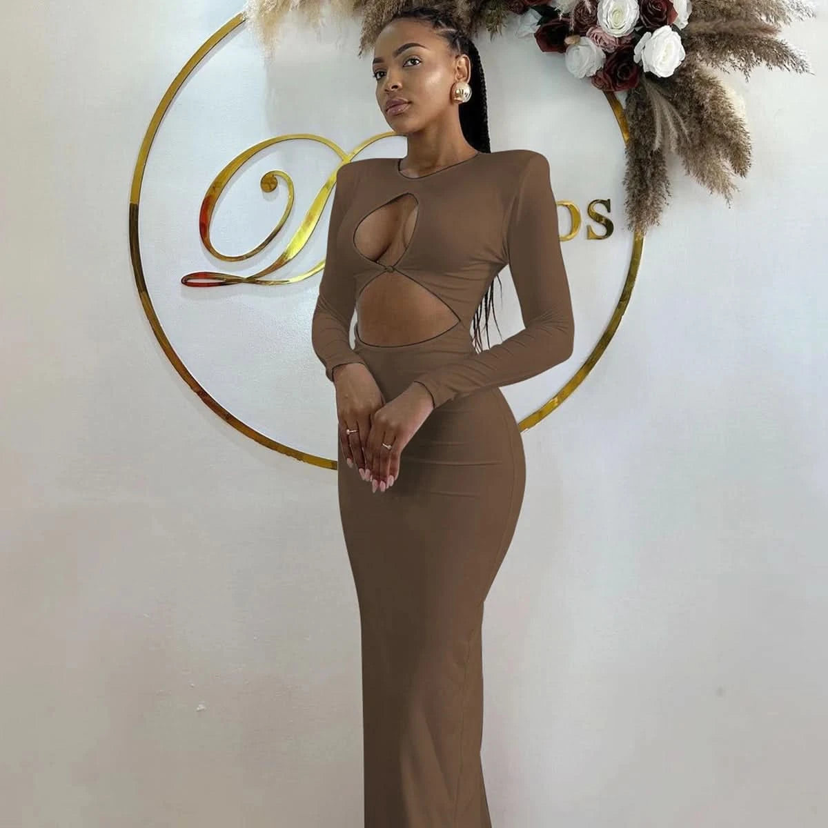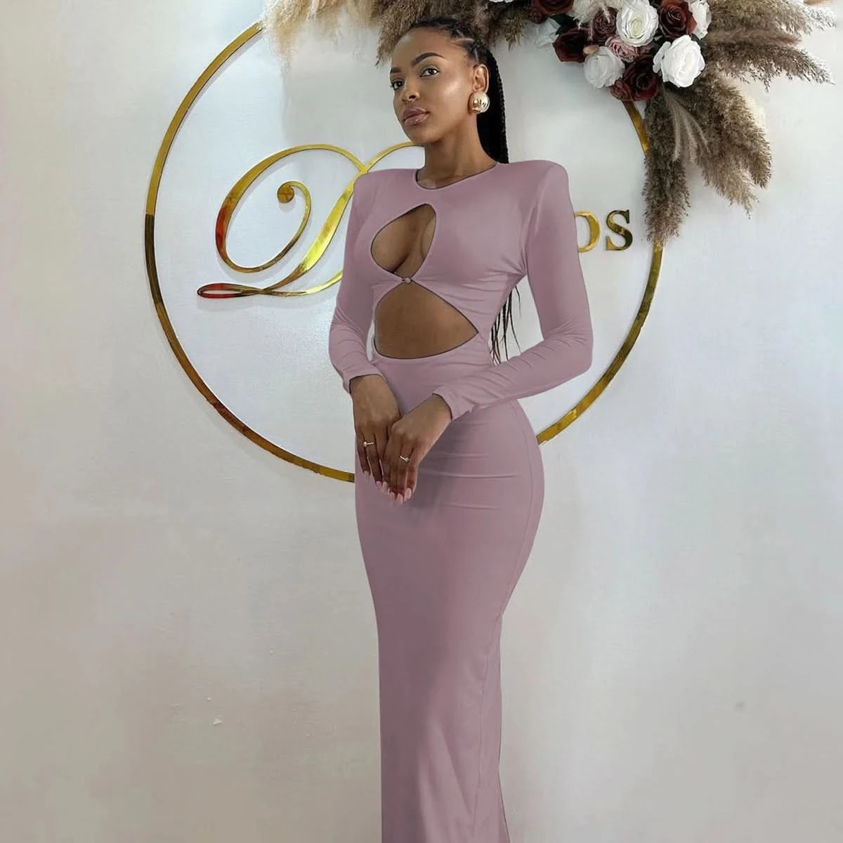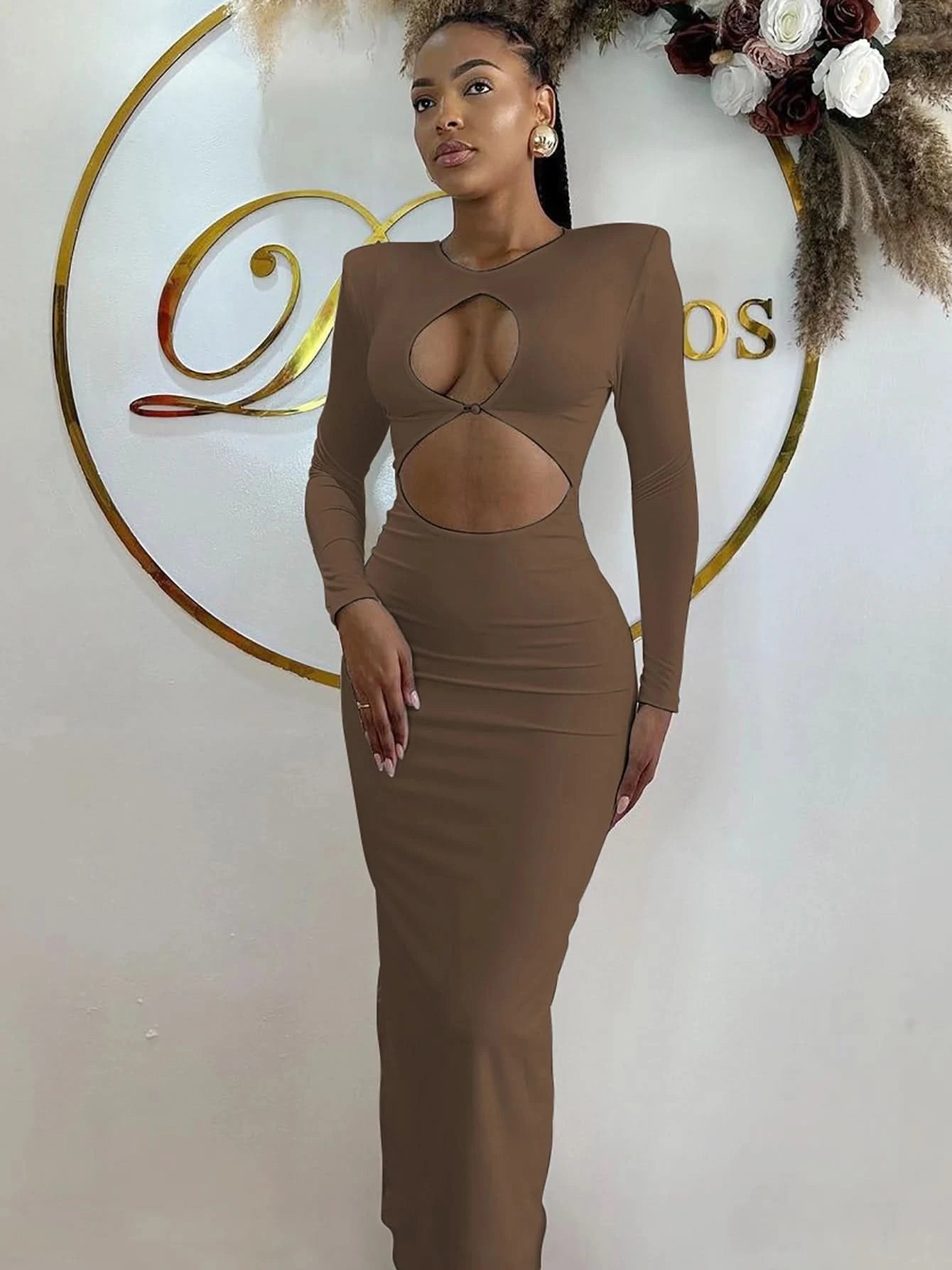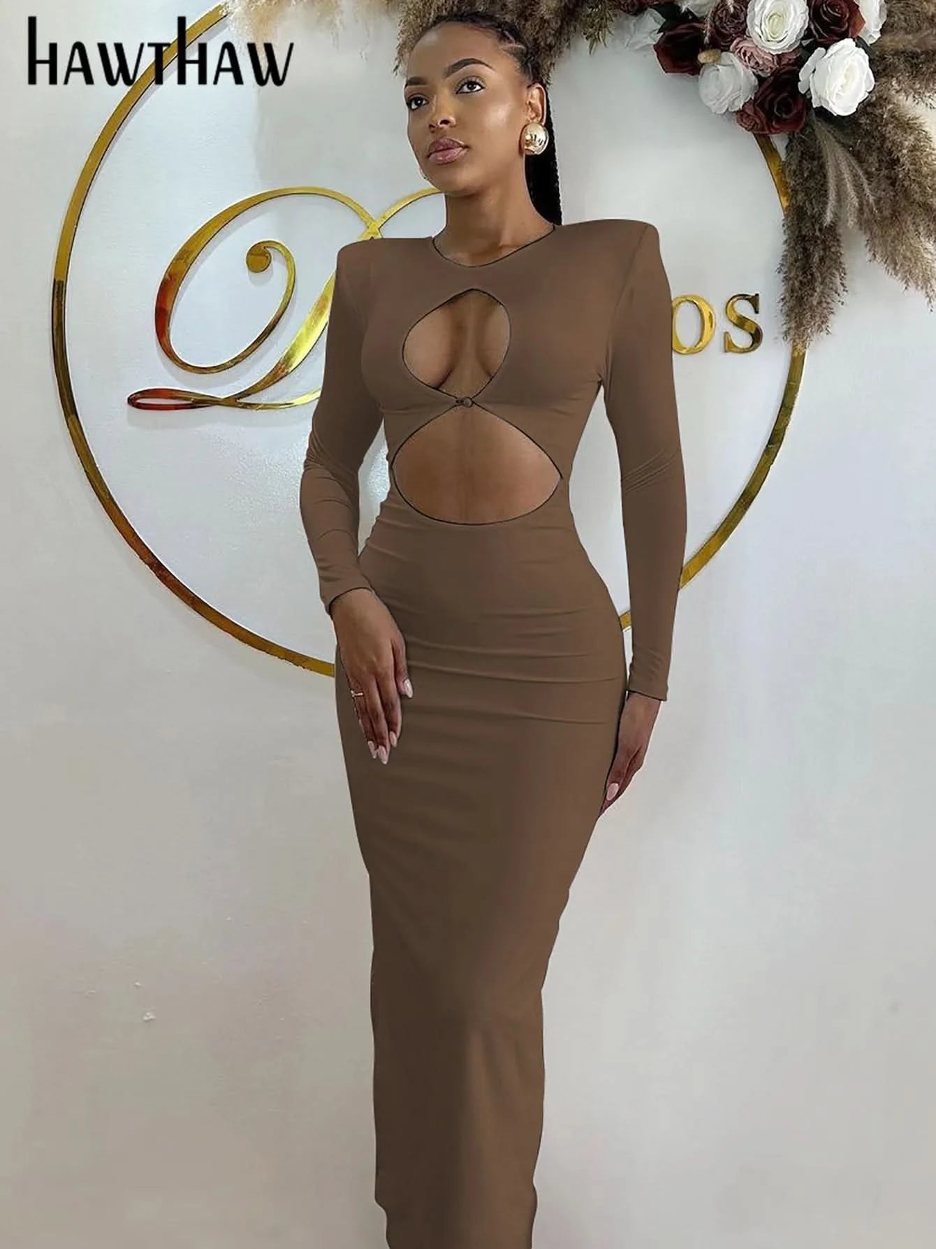 Hawthaw Women 2024 Spring Autumn Sexy Long Sleeve Party Club Hollow Out Bodycon White Long Dress Wholesale Items For Business